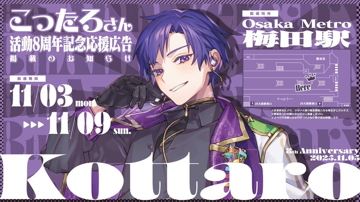 \\🌟応援広告掲載のお知らせ🌟// すたぽら こったろさんの8周年を記念して3都市にて応援広告を掲載させて頂いております✨️ 🗓第2弾 11月03日〜11月09日 (7日間) 大 阪 🎯Osaka Metro梅田駅 ⚠️詳細は画像またはツリーをご確認ください🙇♀️ #すたぽら #こったろ #こたくんへ