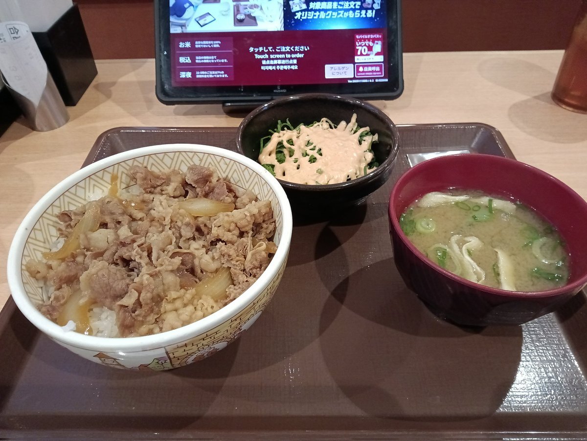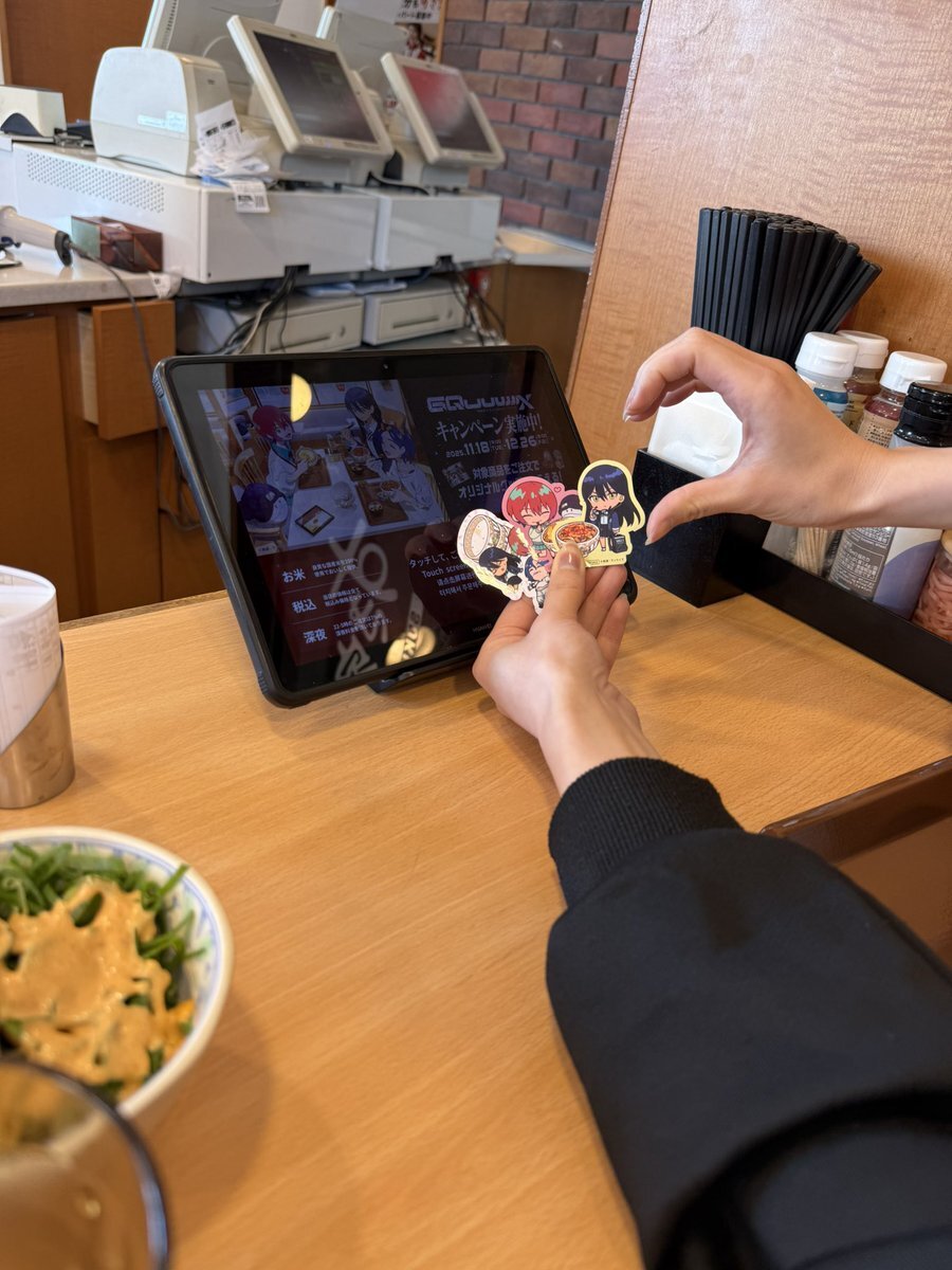 🐮すき家店内飲食のメリット🐮 ①注文がタッチパネルなので敷居の高い「MAVトッピングセット」を言わなくて済む ②1時間に1回マチュ&シュウジの特別放送が聞ける ③店員さんがMAVトッピングセットと言って席まで届けてくれるので他にMAVがいた場合気付くことができる