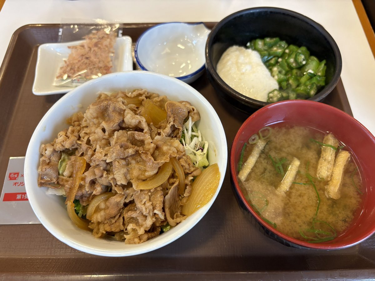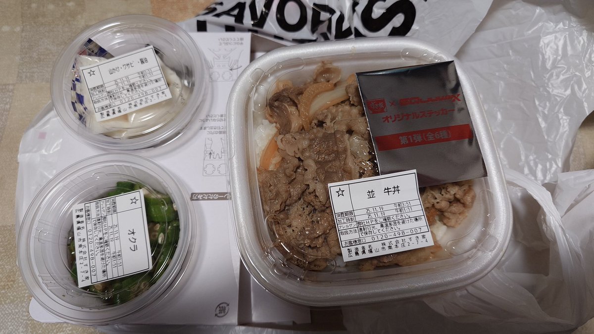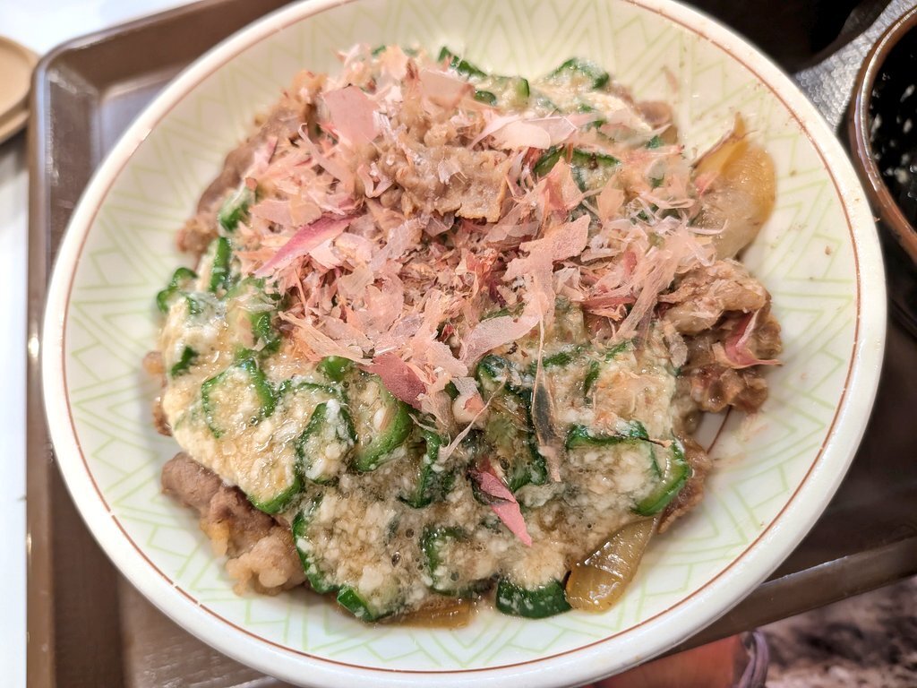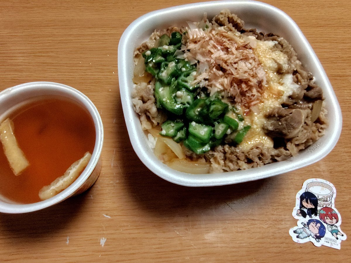 すき家ジークアクスコラボ、いつも頼む山かけオクラでありがたい(*´ω`*) ステッカーは緑のおじさん オクラだけ牛丼に分けて、わさび全部醤油でといたら山かけによく混ぜる! わさびの辛味が山かけで中和されて香りと風味が残って美味しい! 鰹節も山かけに混ぜて風味良し! #このひとときキラキラ pic.x.com/w63y26kzPJ
