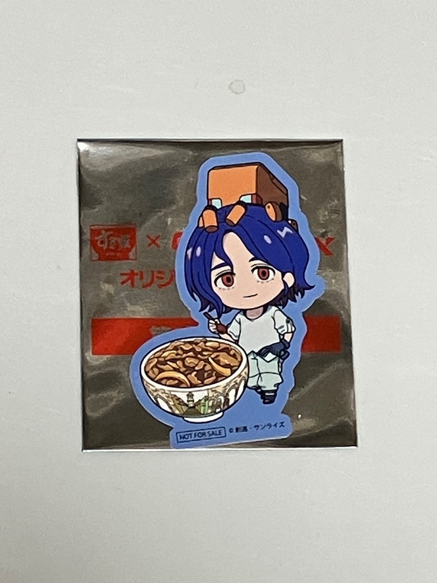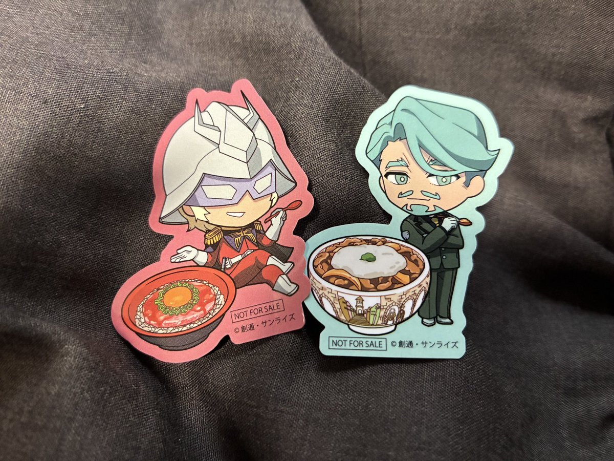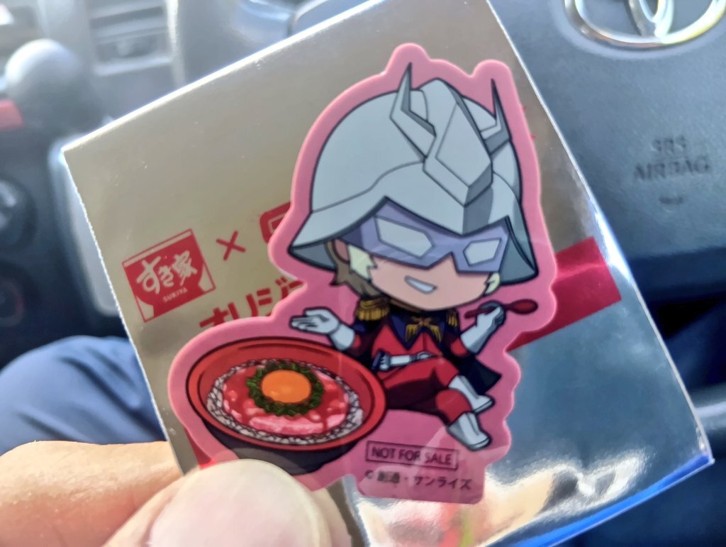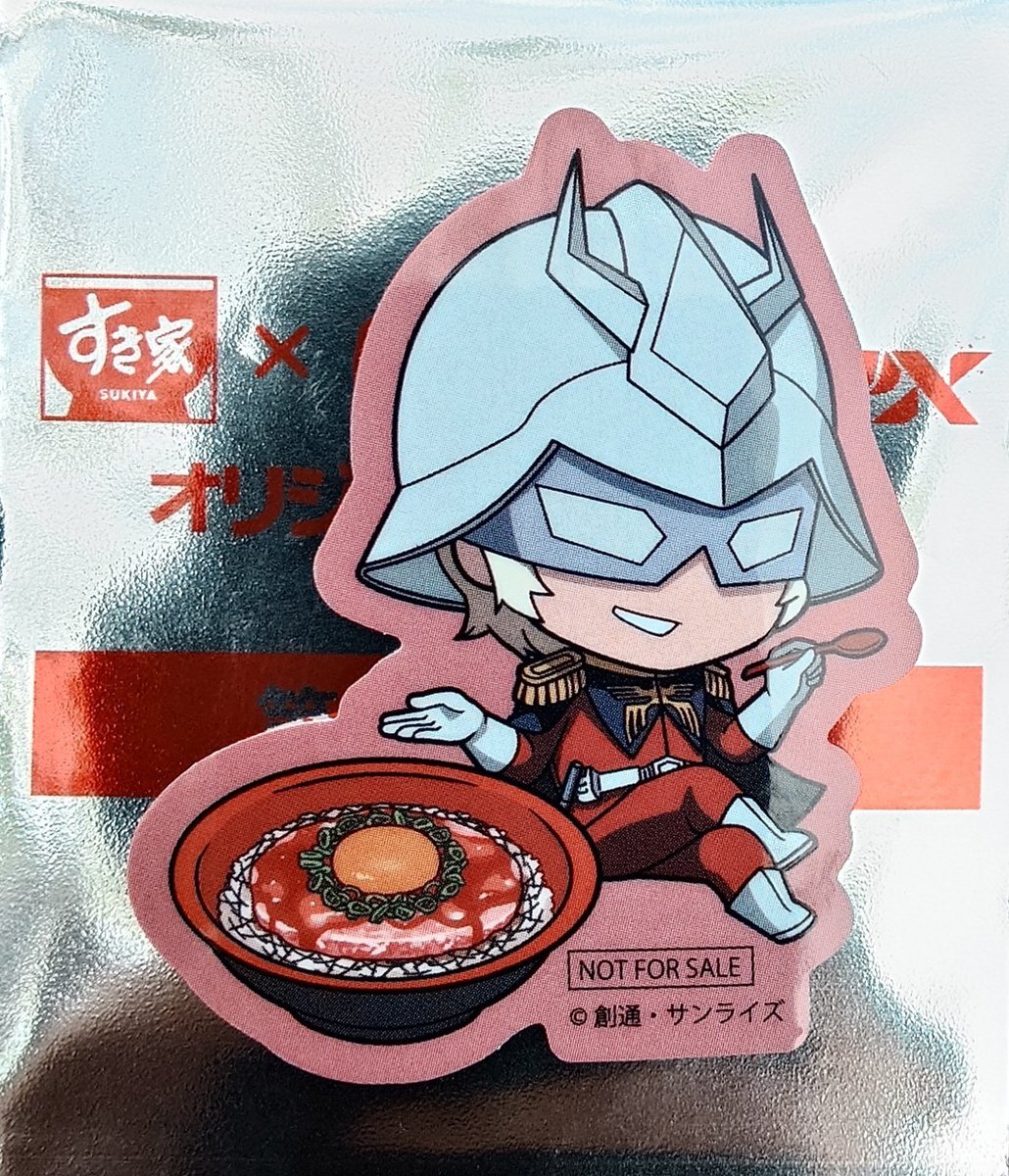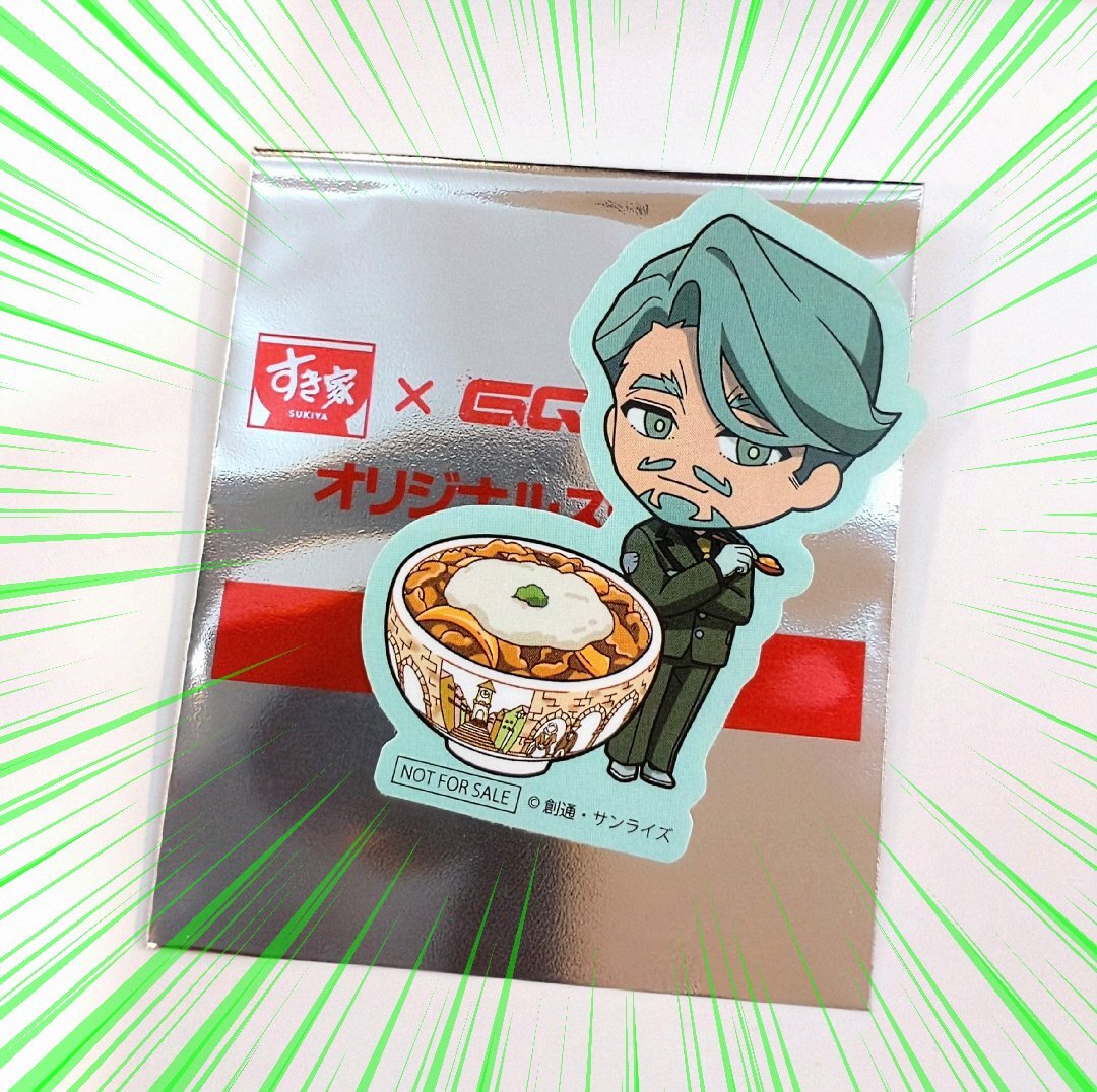 すき家でM.A.Vトッピング食べてきました😋 ステッカーはランダムか。「灰色の幽霊」が欲しいなぁ〜。いや、「木星帰りの男」も捨てがたい。「ヒゲマン」や「緑のおじさん」もアリだな…。 「シャリア・ブル」きたーー!!!! やったーーーー (*ノ・ω・)ノ♫ #このひとときキラキラ pic.x.com/EW5Axa4zs6