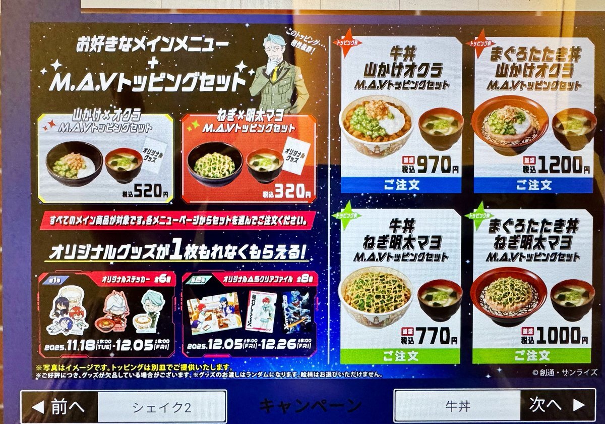 すき家タブレットのメニューに ◯マチュセット:とろ〜り3種のチーズ牛丼+おんたまトッピング+山かけ✕オクラMAV ◯最安セット:牛丼ミニ+ネギ✕明太マヨMAV 等を選択肢上位に表示してくれると楽しいし便利かなと思ったりもする。 #このひとときキラキラ #ジークアクス x.com/neko_kezukuroi…