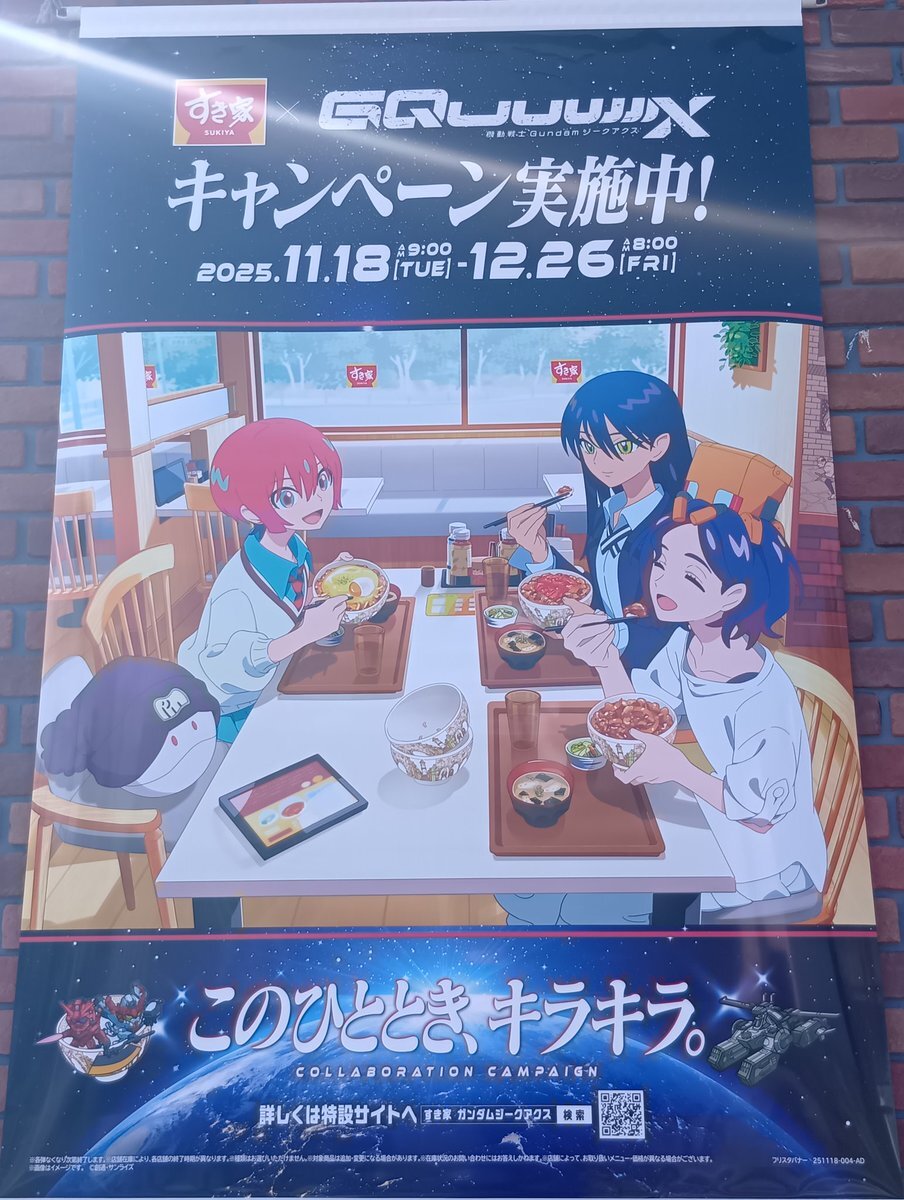 あななたちのおかげで私もキラキラできてます。いつもありがとう。愛と感謝を伝えに来た。美味しかったです。すき家の店員さんも注文したご飯作ってくれてありがとう。 #すき家 #ガンダムジークアクス #このひとときキラキラ pic.x.com/bV9Iiuu2yT