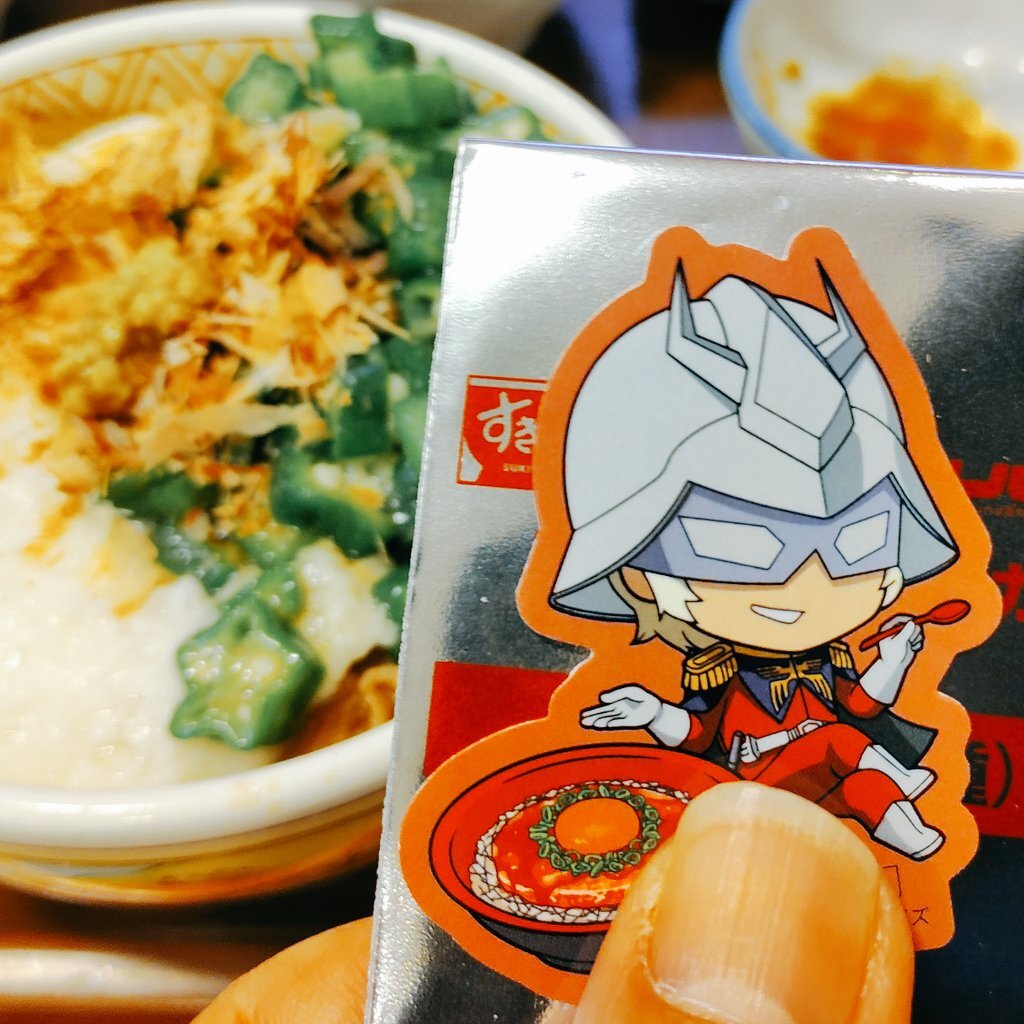 すき家でもガンダムジークアクスコラボキャンペーン🍚 山かけ×オクラのMAVトッピングセットで、ステッカー ゲットしました😁 #このひとときキラキラ✨ pic.x.com/n0LXMV4228 x.com/sukiya_jp/stat…