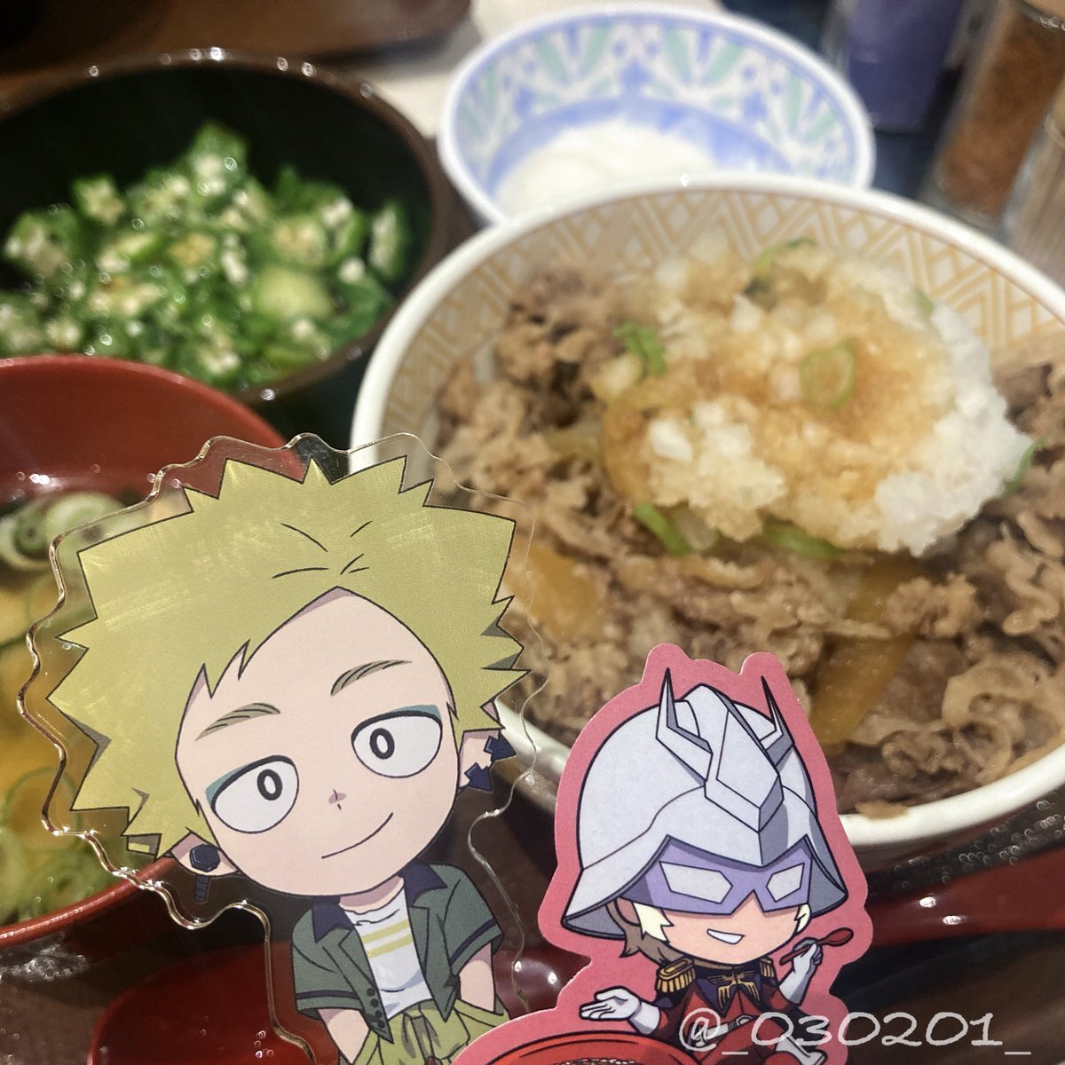 #GQuuuuuuX #このひとときキラキラ ケーンくんとすき家へ!鬼おろしぽん酢牛丼に山かけオクラトッピングにしたら もりもりになってしまった🥳🎶 ステッカーはシャアでした!店内放送は聞き取れず…!コラボありがとうございます🍚 pic.x.com/lQNNXu09uj