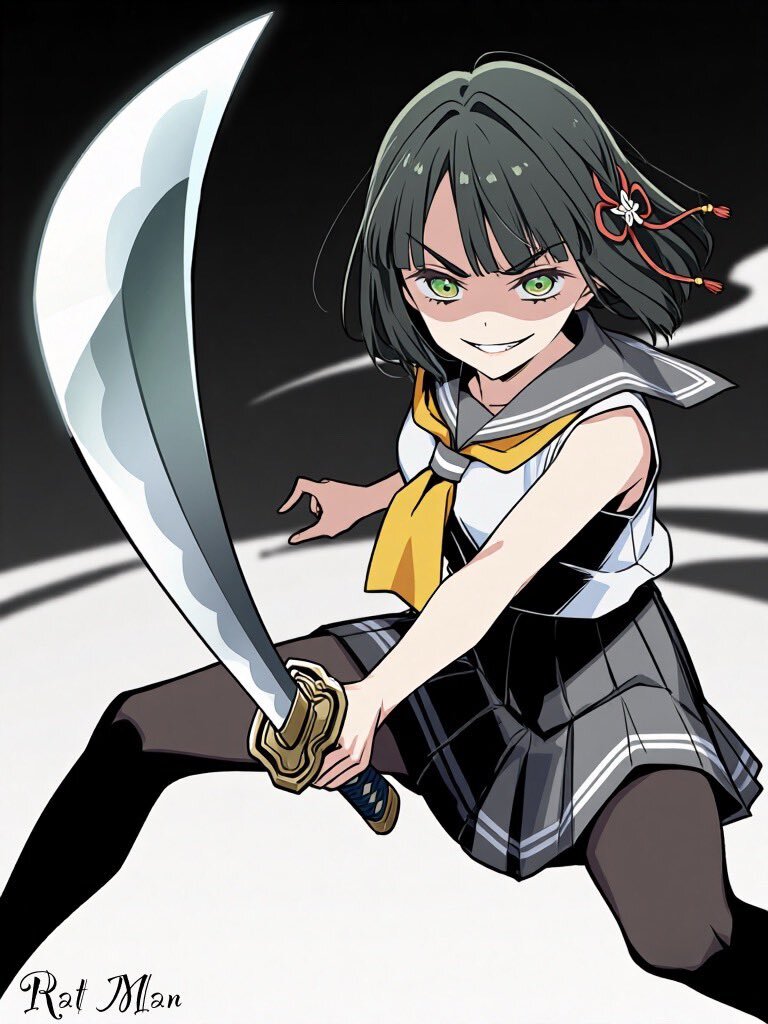#このタグを見た人は黙って武器を持ったキャラを貼る 【ロリータ剣士 緑川心】 AI生成イラスト by TryArt #AI生成 #AIイラスト #TryArt pic.x.com/vYK1rRfGP1 x.com/popo530a99665/…