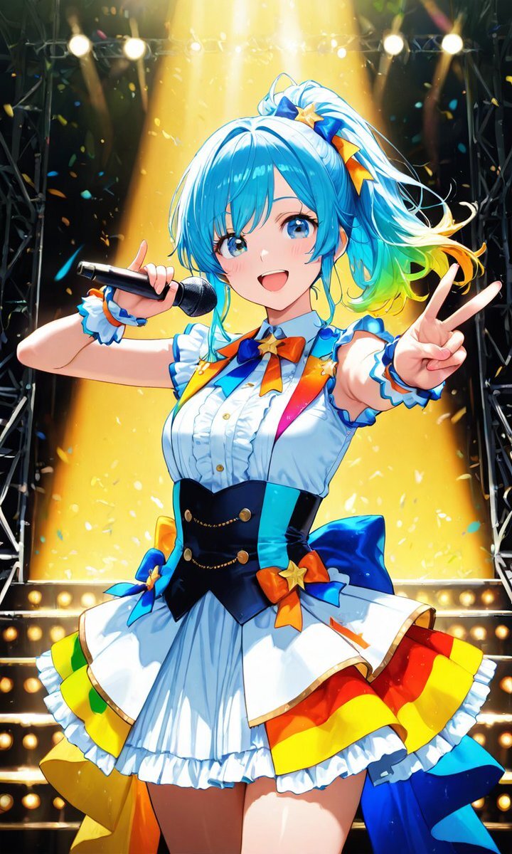 #このタグを見た人はAIイラストしりとりしましょ〜曲名編 「な」→「なんてったってアイドル」 小泉今日子 ♪アイドルは やめられない Yeah! Yeah! Yeah! 次の方は「る」でお願いします x.com/pialight91/sta…