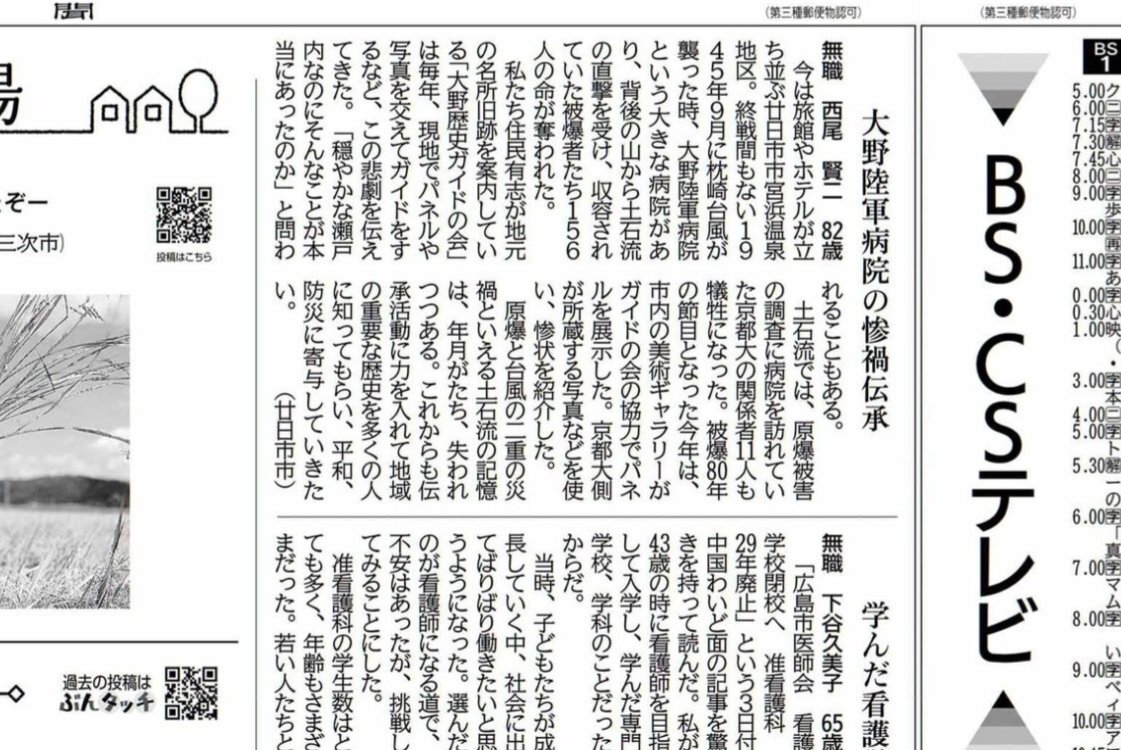 先週の #チョッちゃん では、疎開先(青森県諏訪ノ平)のリンゴ小屋が台風で壊された。 小説[#屍の街](大田洋子さん)、漫画[#この世界の片隅に](こうの史代さん)、アニメ[#この世界のさらにいくつもの片隅に](片渕須直監督)でも台風の場面がある。 日本を縦断した枕崎台風である。 (中國新聞9/30広場欄) pic.x.com/7cXfNcEKiv