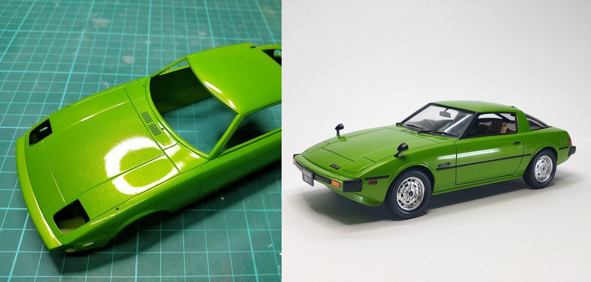 #この塗料使ってます クレオスのMr.クリアカラーGX クリアシルバー! ベースカラーの上に吹いたらパール塗装、クリアシルバーの上からクリアカラーでコートするとマイカ塗装、ヘッドライトのクリアパーツに吹いたらレンズの奥行き出せたり、その他に色々と裏技的に使える神塗料です😆 重宝してます😤 pic.x.com/2Sn4vWj5VU