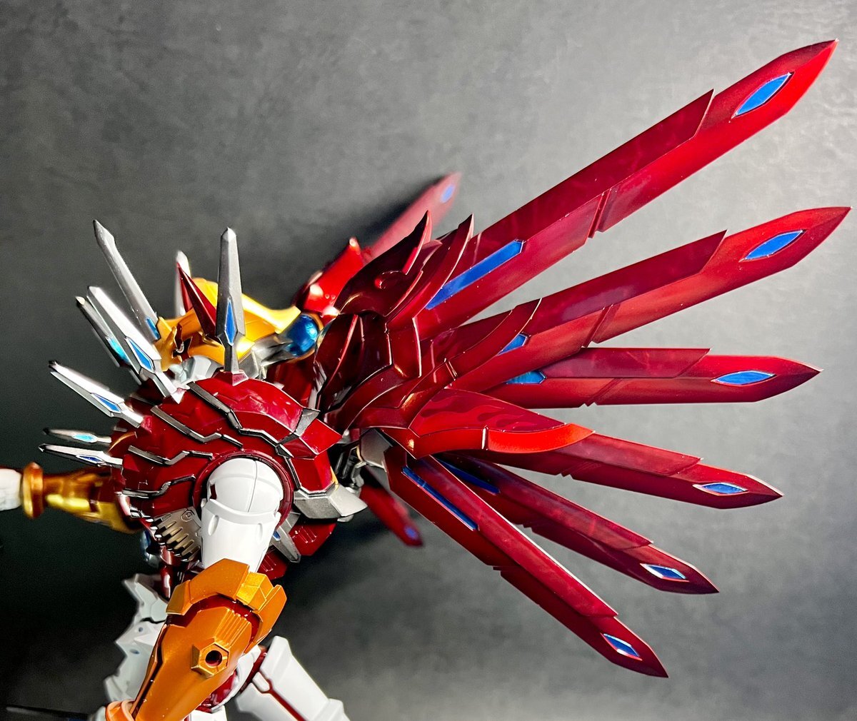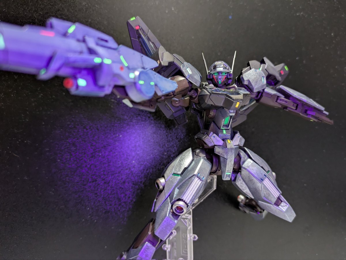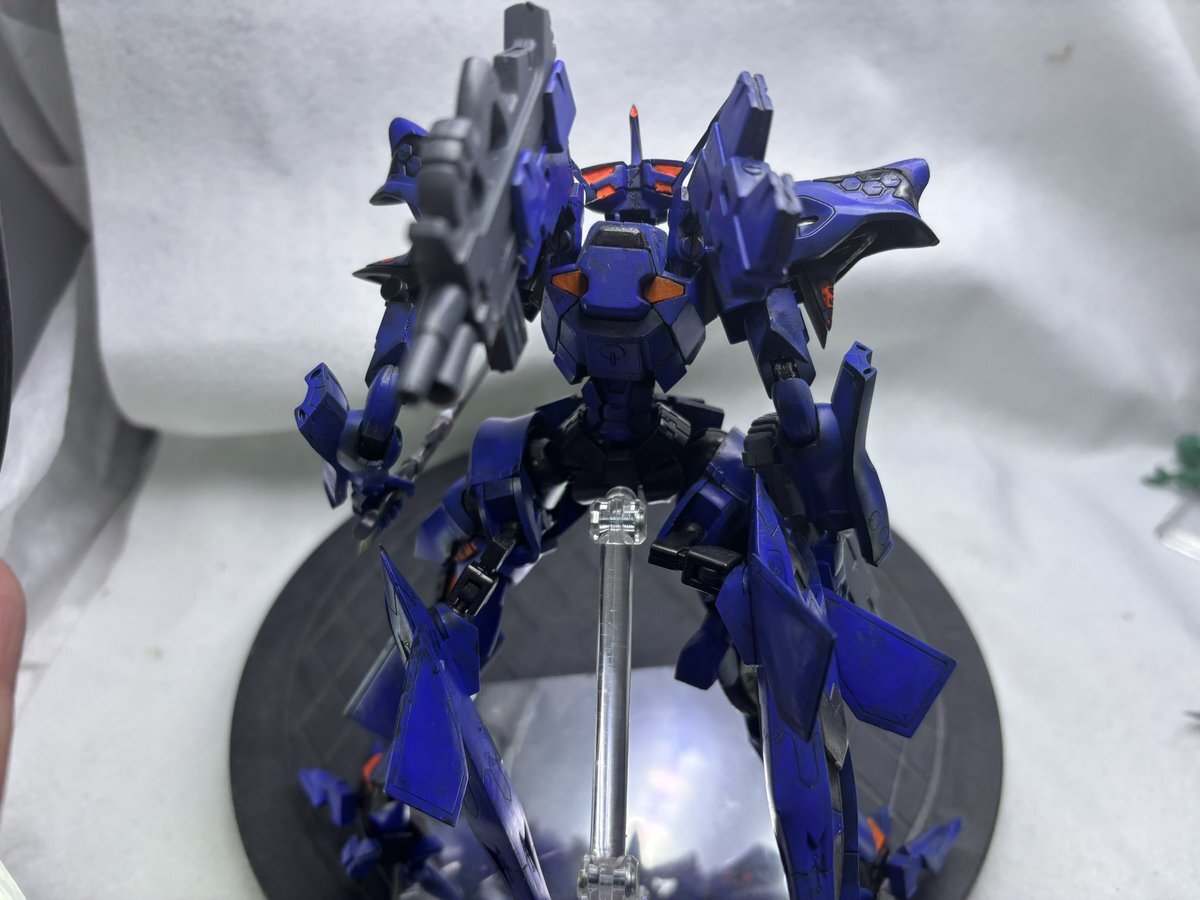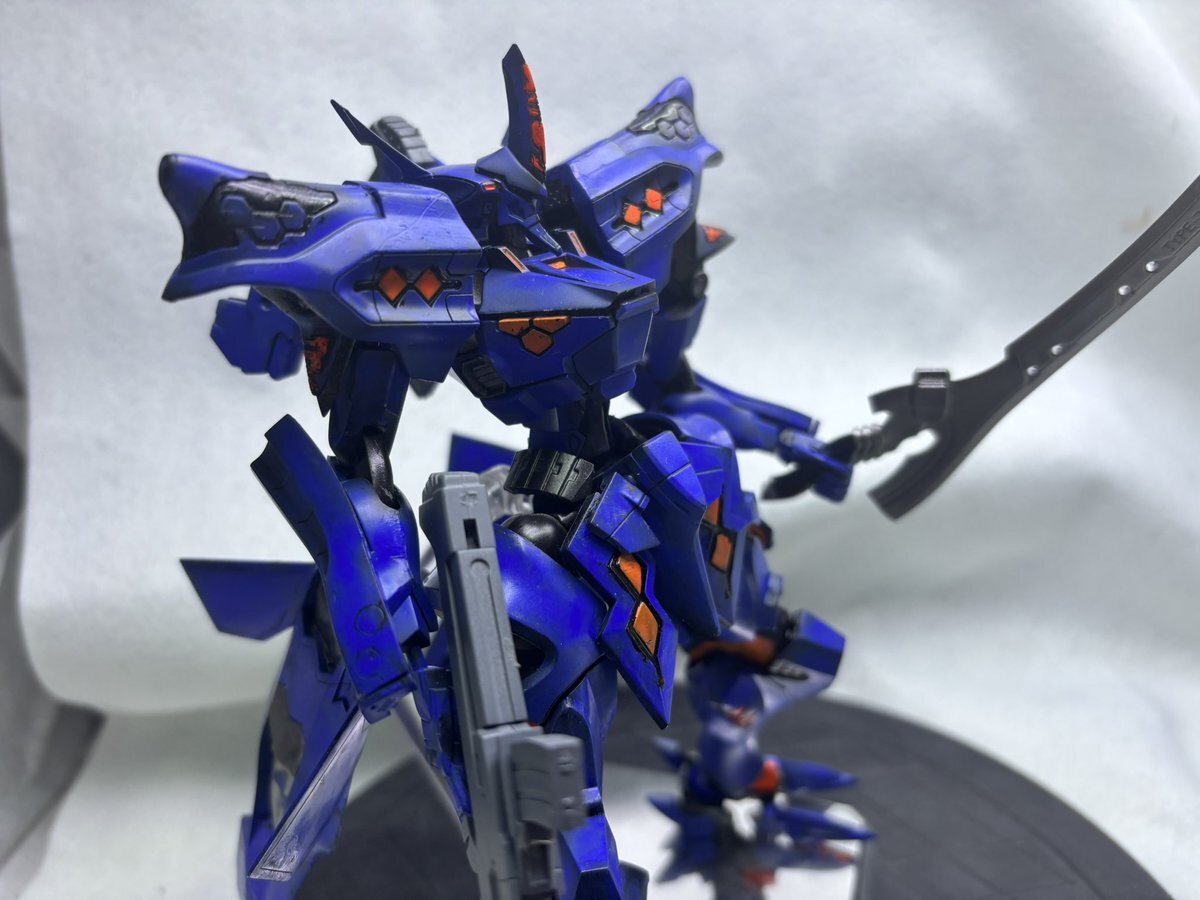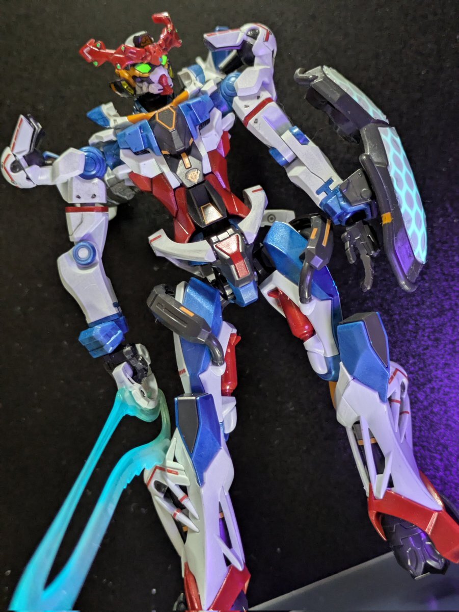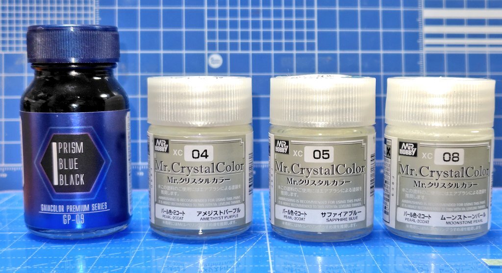 #この塗料使ってます Mr.クリスタルカラー全般が好きです。 ローザンランサーはガイアのプリズムブルーブラックをベースに、アメジストパープルとサファイアブルーを別方向から吹いてます。 一番よく使うのはムーンストーンパールです。 pic.x.com/l1lHYYZkPg