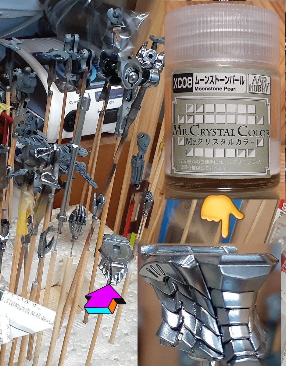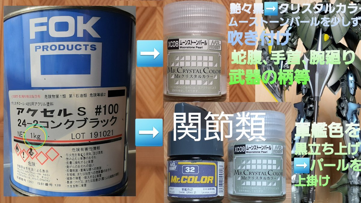 #この塗料使ってます A-TOLLの工程は後日と言ってたら良きタグが👀✨ 使った塗料は画像でm(_ _)m ムーンストーンパール👇 ✨擬似メッキ表現✨に最適(*´・ω・`)bです ‼️グラファイトブラック(´・ω・`)? 知らない塗料、気になりますφ(..) #FSS_jp #プラモデルライフ x.com/Lancewo9093136… pic.x.com/rLxIlE0g1I