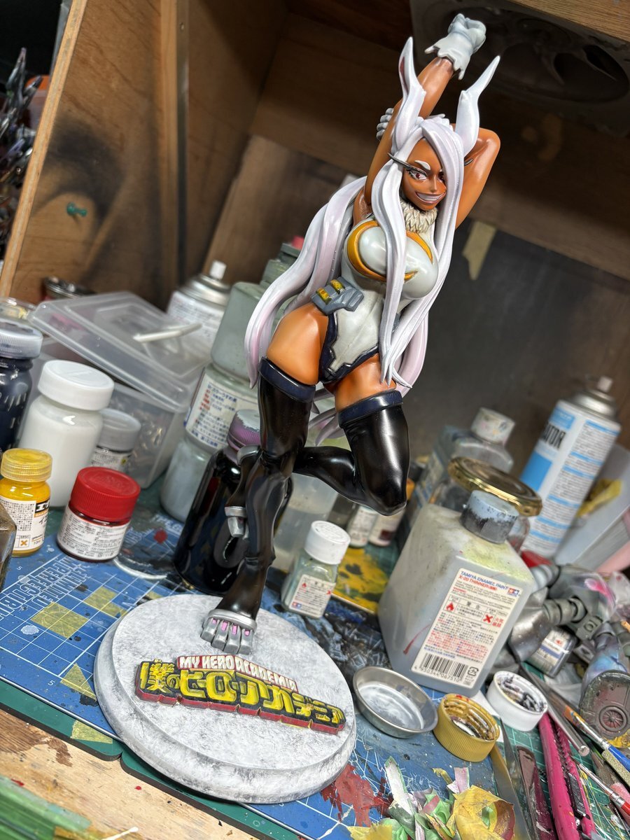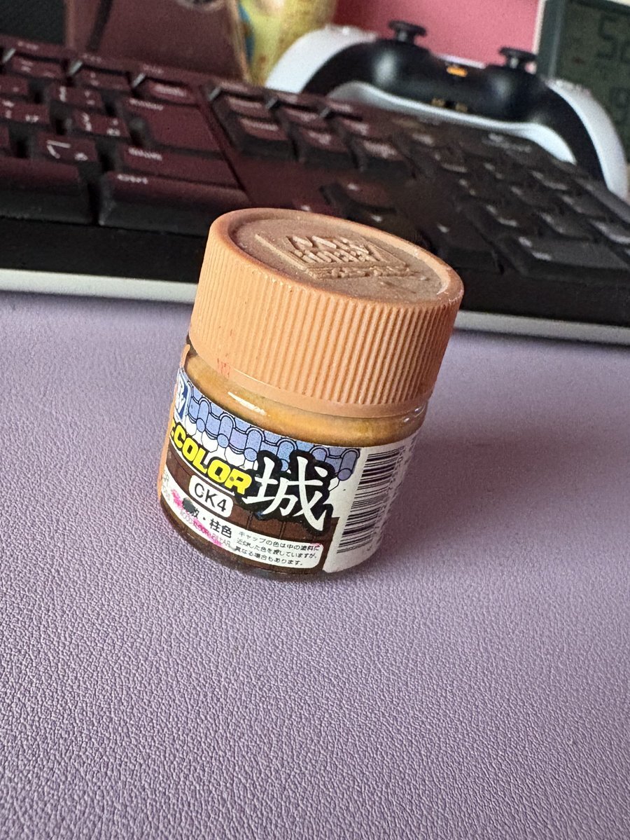 #この塗料使ってます クレオスの Mr.カラー CK4 板敷・柱色 これ褐色肌に抜群なのよね✨️ ただもう絶版!!笑 秘伝のタレみたいに、 調色しては足して 調色しては足して使ってる…笑 #ヒロアカ #ガレージキット #3DPrinting pic.x.com/s4aOyOhCDv