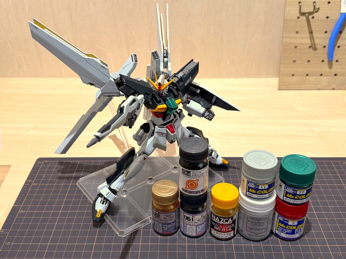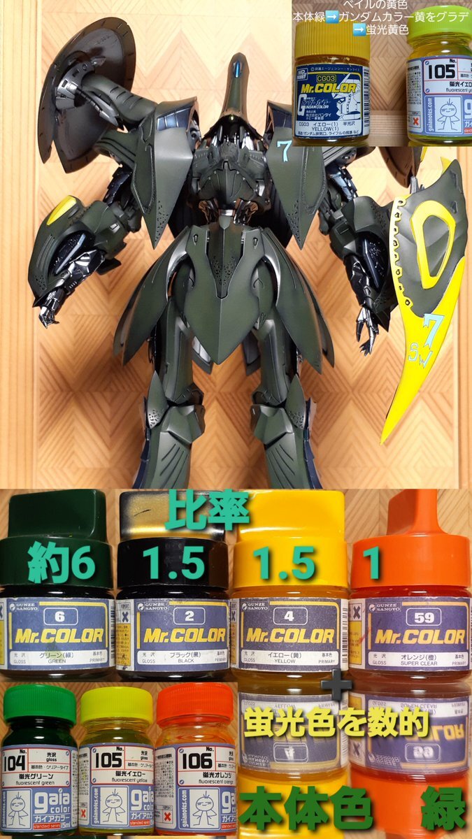 #この塗料使ってます 本体 44 タン 装甲 39 ダークイエロー キャップ 、パイロット 55 ダークイエロー2 スモークディスチャージャー ヘビーガンメタリック pic.x.com/zVJFAK2Ada