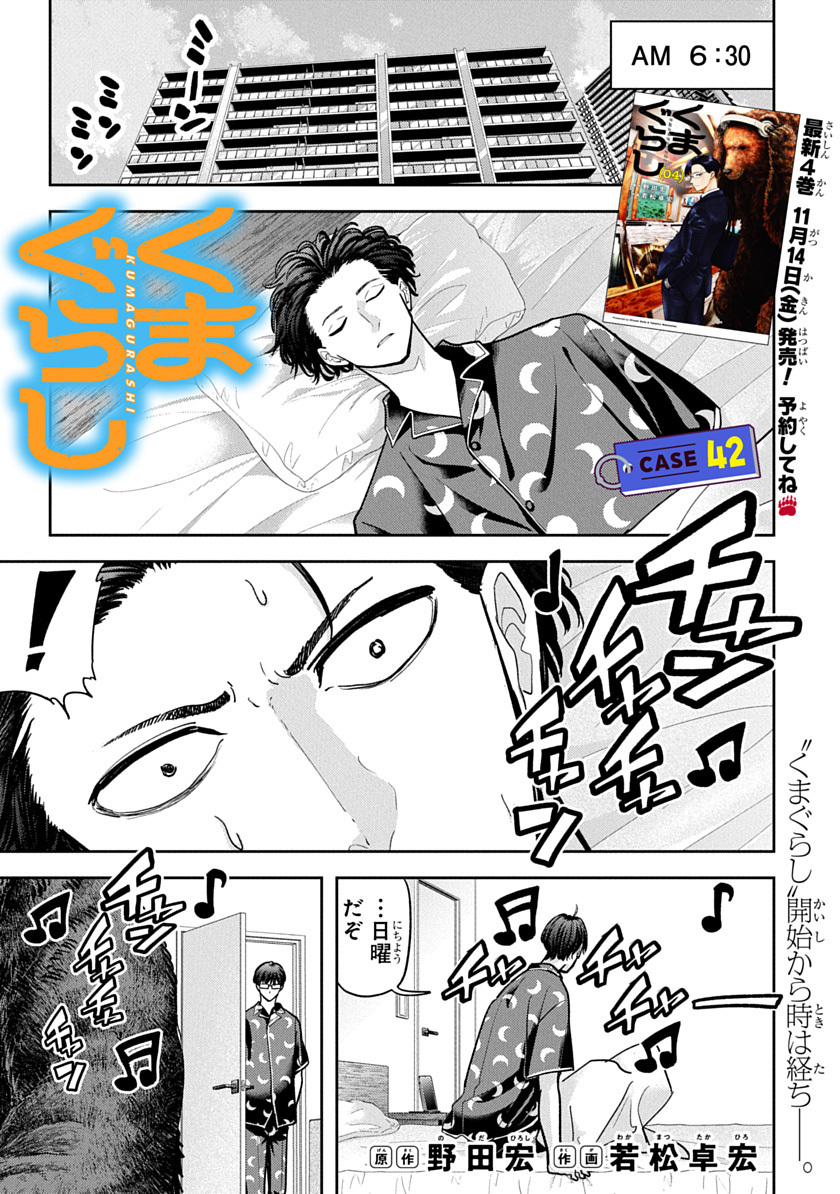 / 📌『#くまぐらし』 📣本日最新話更新🆙 ⭐42話まで初回無料‼️ \ ラジオ体操で目覚める クマと人の同棲生活。 健康的でいいバルね! #ラジオ体操 #床軋みそう #熊 #くま #クマ #この熊は人を襲わないよ 最新話はピッコマで!✅ ➡️ piccoma.com/web/redir_link… pic.x.com/RO5ClB8BOc
