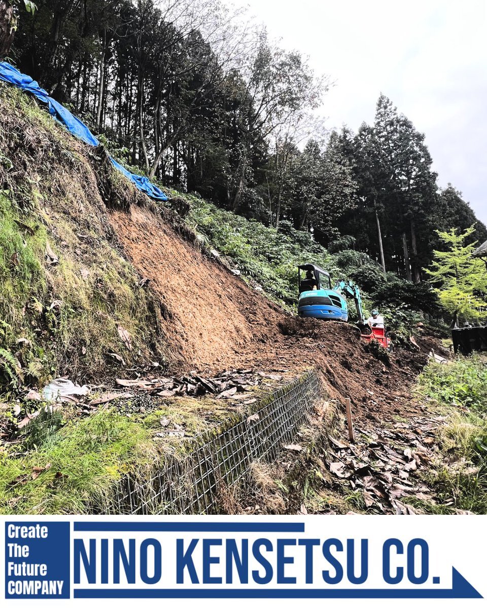 【法面崩落復旧工事👷♂️】 ニノケンです❗ 村上市内の境内に近接している地山が崩落し、その復旧作業を行っています🫡 とにかく施工場所が狭く、そこまでの作業道も狭いのでちっちゃい重機でコツコツと💪 不整地運搬車もかわいいミニサイズ💞 #新潟グラマー #完全週休2日制 #これからは建設業の時代 pic.x.com/M9GOgOJyQA
