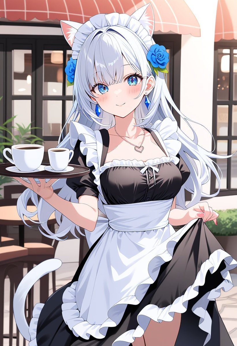 #これを見た人はメイドさんを貼りましょう Grok画伯で遊んでみた。 メイドさん…と言うよりは喫茶店の店員さん? #Grok #AIイラスト #AIイラスト美少女 pic.x.com/UzY1zQB2YG x.com/ginnekoki/stat…