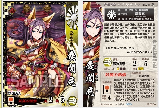 お色気千代女が欲しいなぁ うちの武力ゴリ押し山県デッキの原点で、移動力低下も相まってかなりお世話になりましたw(;・∀・) #これを見た人は英傑大戦に追加して欲しい武将を布教しましょう pic.x.com/eJSYqJHfMr