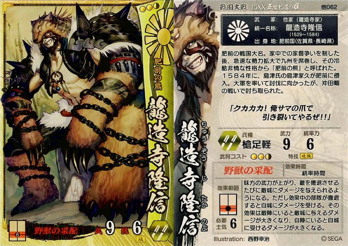 #これを見た人は英傑大戦に追加して欲しい武将を布教しましょう ①君主名の由来。 イラストも声も性能も全てが最高のカードだった。 1ヶ月下方逃れたからこのまま逃げ切りたいと思ったらとんでもない下方食らったが最後ついぞアッパーを貰うことはなかった。 pic.x.com/Vk6A3XFrdj