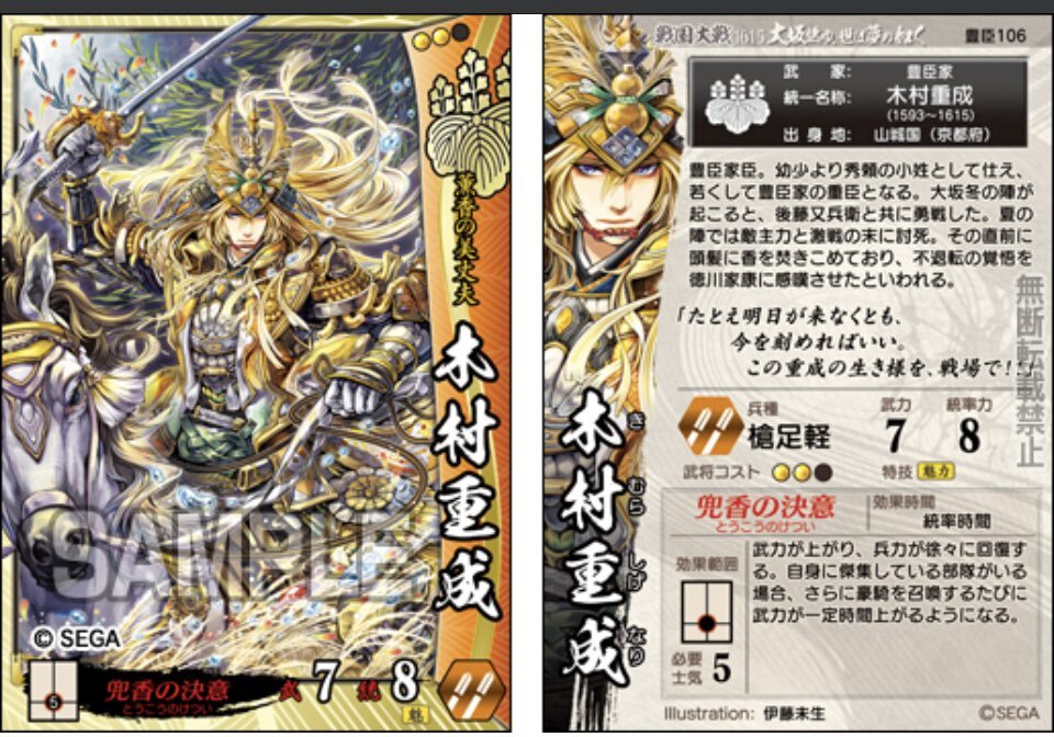 戦国大戦ver ①木村重成 群雄伝で惚れ。青柳さんと一緒に来て欲しい。 ②初芽 唯一自引きしたSSRで思い入れ大。できればイラストそのままで… ③亘理御前 イラストめっちゃ好き。 ④能島姫 父と合わせて広範囲爆撃して遊んでました💣 #これを見た人は英傑大戦に追加して欲しい武将を布教しましょう pic.x.com/OUY87uo2o8