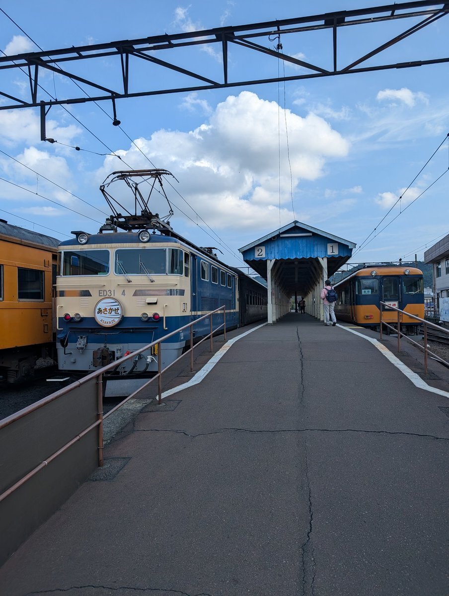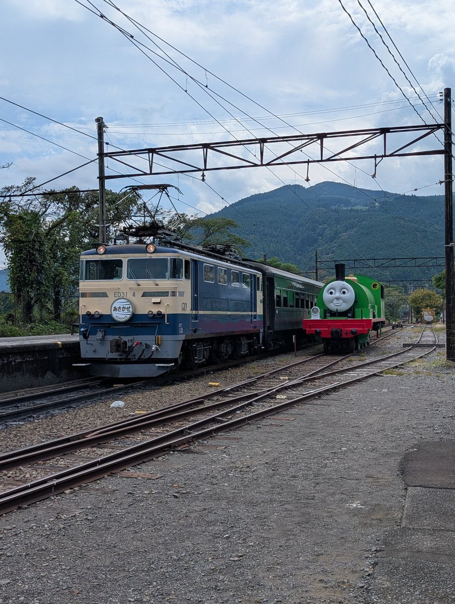 #これを見た人は青色が入ってる画像を貼れ #大井川鐡道 #大井川鉄道 #電気機関車 #きかんしゃトーマス #家山駅 #ヒップバーン #松尾きらら 上記タグがあったので、思わず投稿 大井川鉄道のEL(電気機関車)急行 アイドルグループヒップバーン 青色担当 松尾きらら pic.x.com/Veu3PlloNA