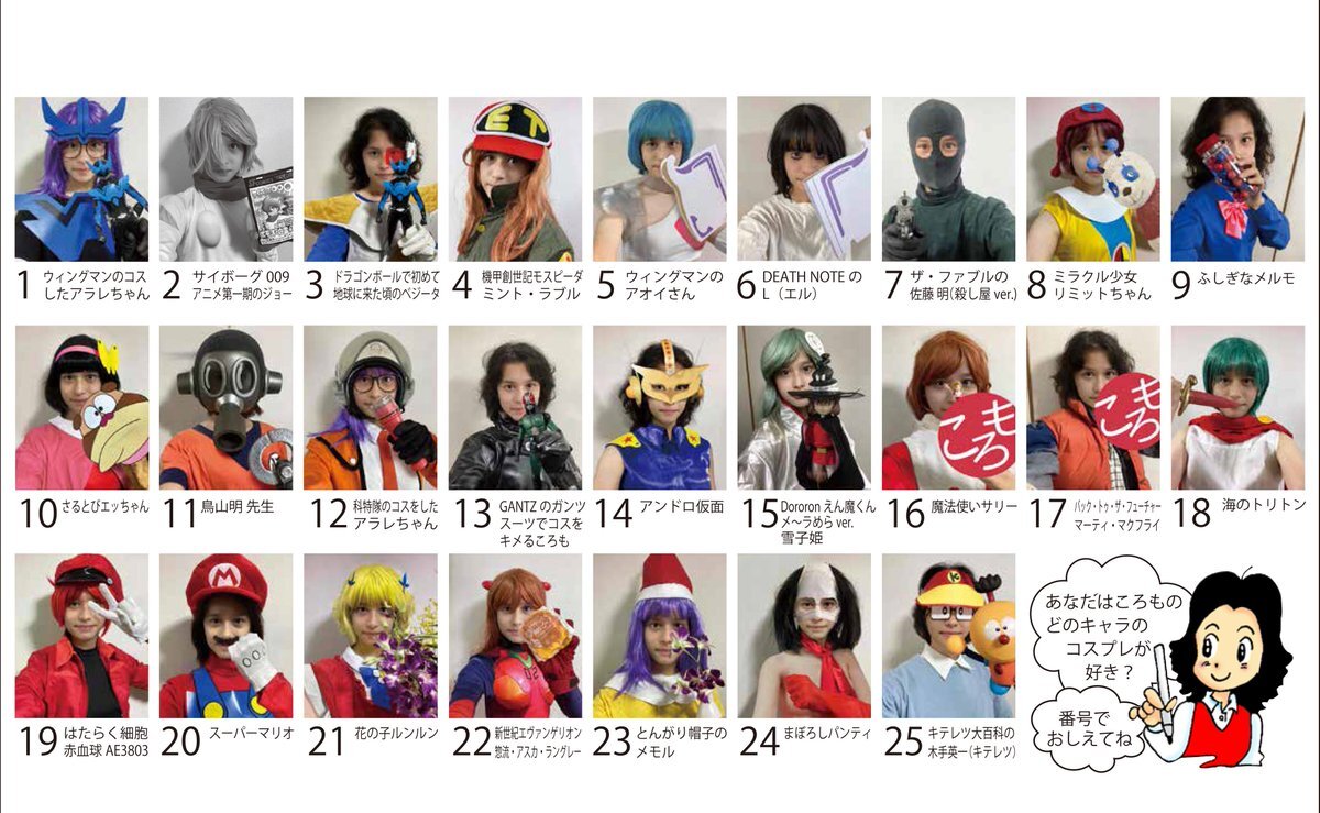 #ころものコスプレ人気投票 第10弾 去年の11月の第9弾から ころもが新たに投稿した25キャラの コスプレをエントリー! 今回で累計250のキャラの コスの人気投票やってるころも! こんなオモロい企画 #多分私しかやってない で、今回もあなたが一番スキな コスの番号をひとつだけ リプで教えてね!