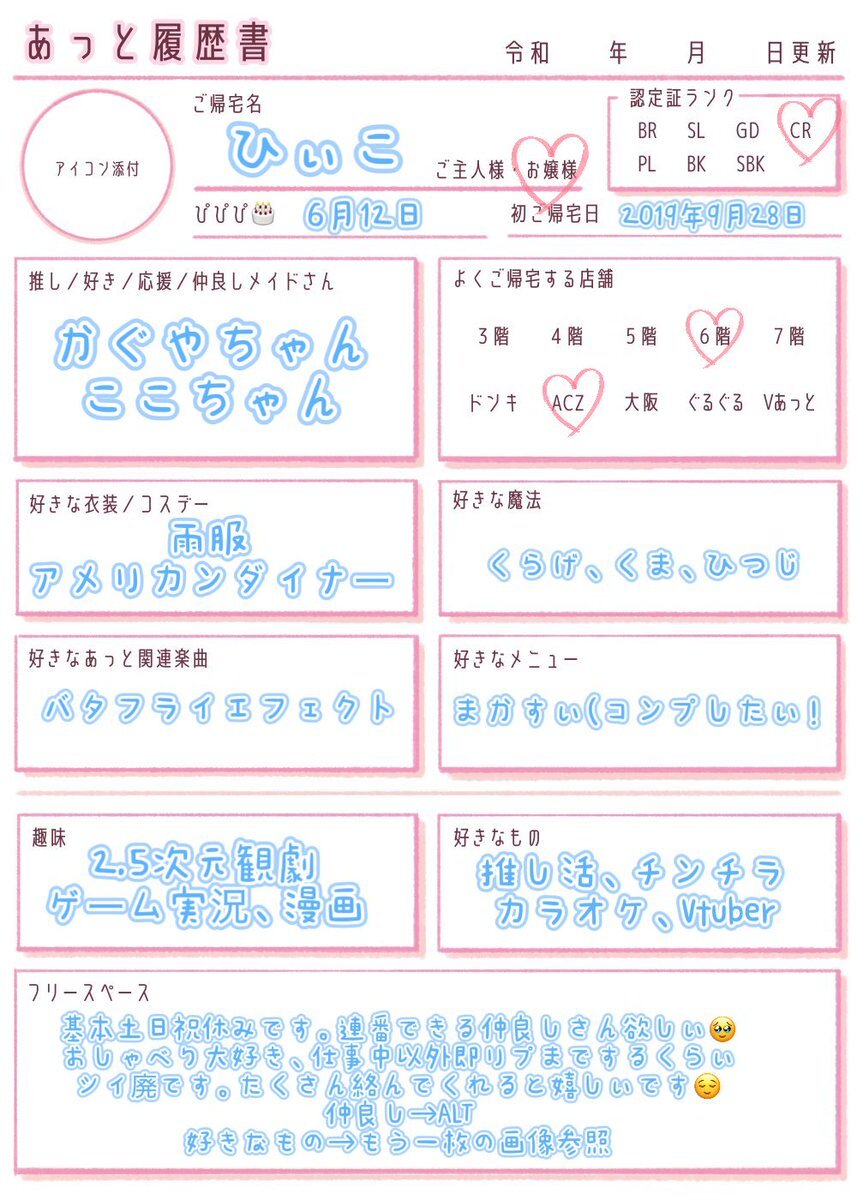 あっと履歴書更新しました! いいねくれた方もおむかえにいきます💭 よろしくお願いします💭 #あっと履歴書 #ご主人様と繋がりたい #お嬢様と繋がりたい pic.x.com/gbq0mgXbuZ