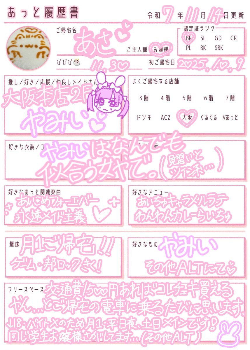 𝜗𝜚˚⋆︎✧ ♥ 大阪本店2F やみいちゃん ♥ BRで履歴書を出してる方を全く見かけずポストするのにかなり勇気を振り絞りました。。 あっとだ〜〜いすきなお嬢様と繋がりたいです➰ ♡or↺ 素敵なご縁がありますように🎀 #あっと履歴書 #お嬢様と繋がりたい #ご主人様と繋がりたい pic.x.com/k37JbcFcmV