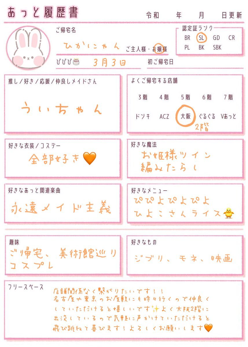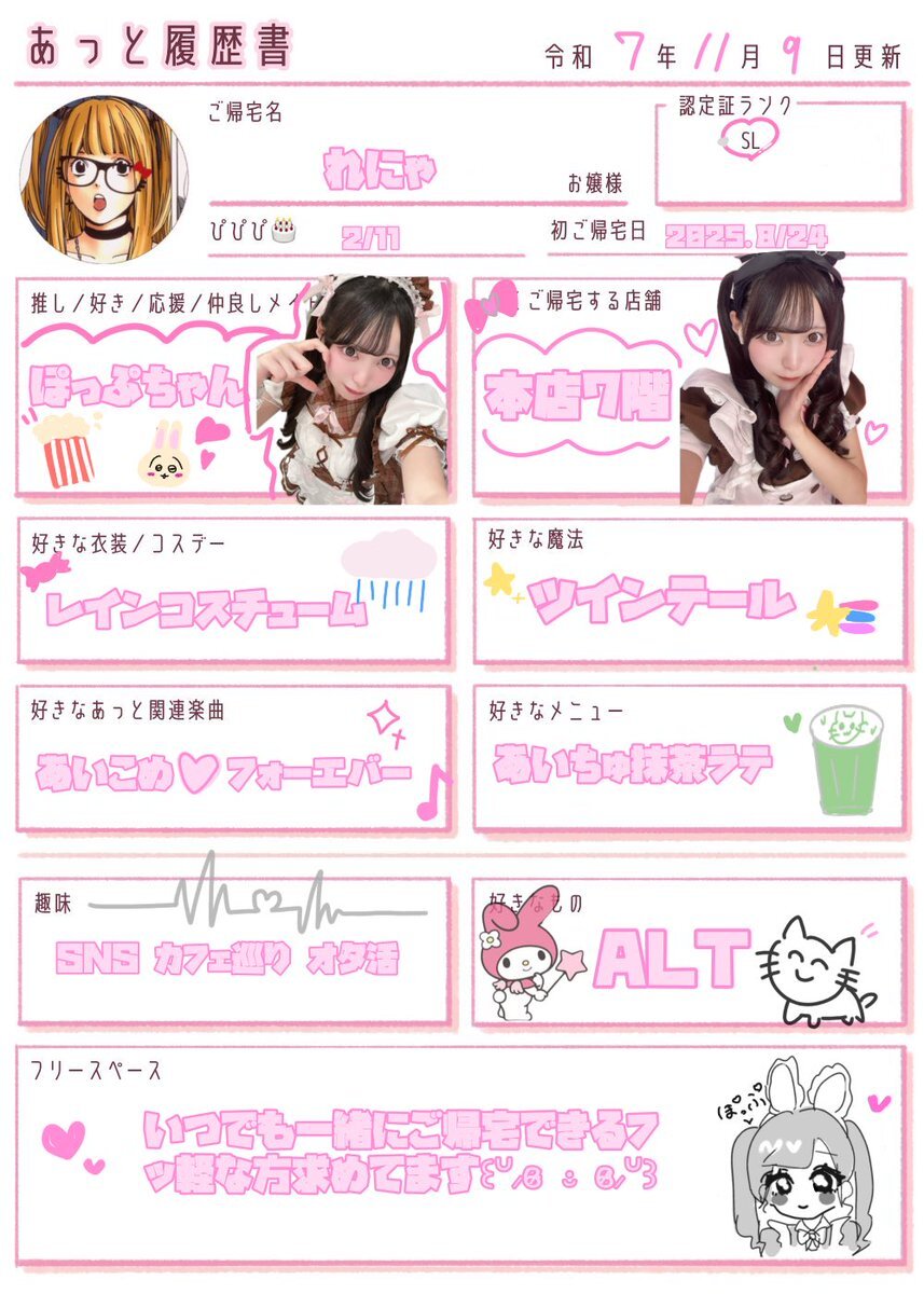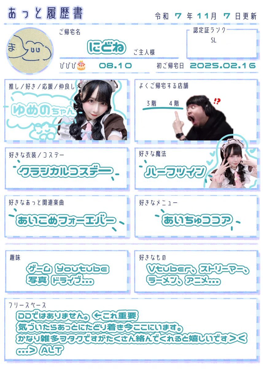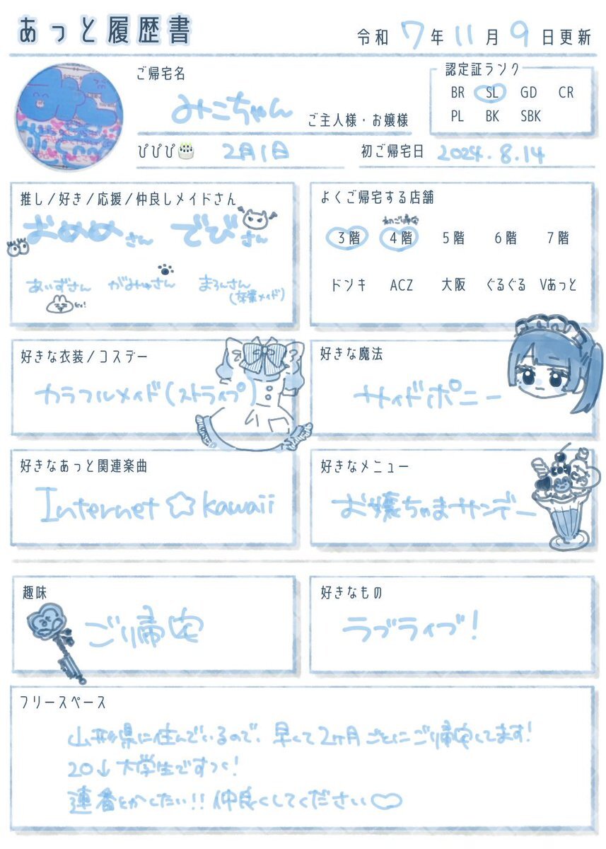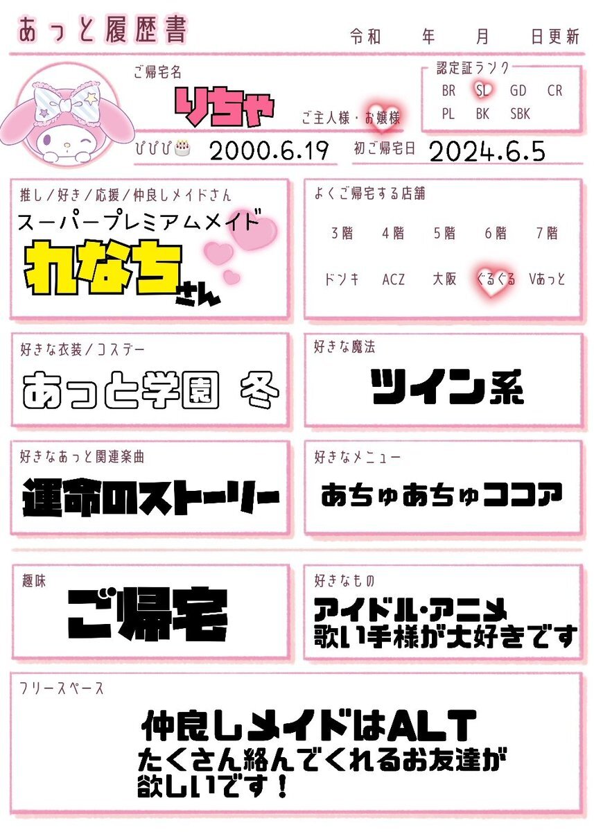 最近SLにランクアップしました𝜗𝜚ෆ 一緒にご帰宅できるご主人様、お嬢様のお友達ください( ⸝⸝ ᴖ.ᴖ ⸝⸝ )❤︎ #あっと履歴書 #お嬢様と繋がりたい #ご主人様と繋がりたい