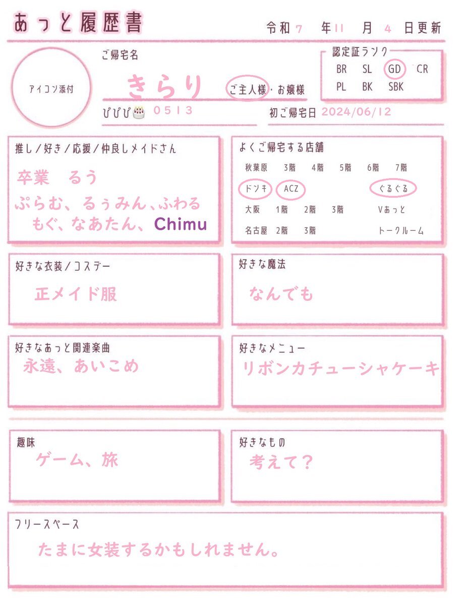 新しい版(@SpiritVet_JBさん提供)が出たので、CRまであと20回を残してますが、#あっと履歴書 更新しました! #ご主人様と繋がりたい #お嬢様と繋がりたい pic.x.com/68vmJOECYa
