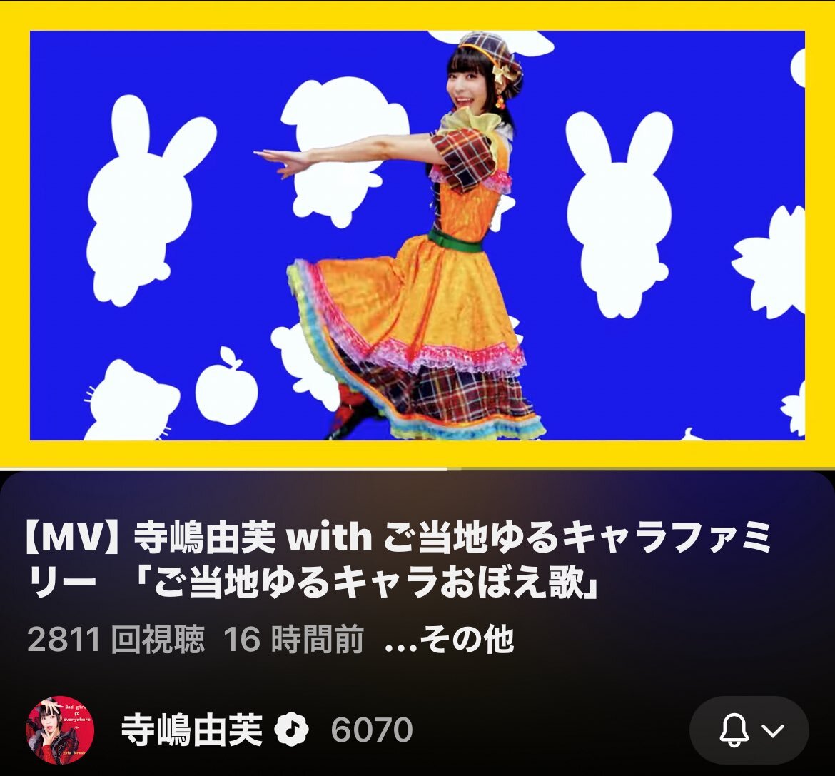 返信先:@yufu_0708#はにゅはにゅ お疲れさまでした(゚ω゚) #ご当地ゆるキャラおぼえ歌 の初披露に立ち会えて嬉しかったです(゚ω゚)✨️ 【MV】寺嶋由芙 with ご当地ゆるキャラファミリー 「ご当地ゆるキャラおぼえ歌」 youtu.be/DUD_r4BMc0g?si…