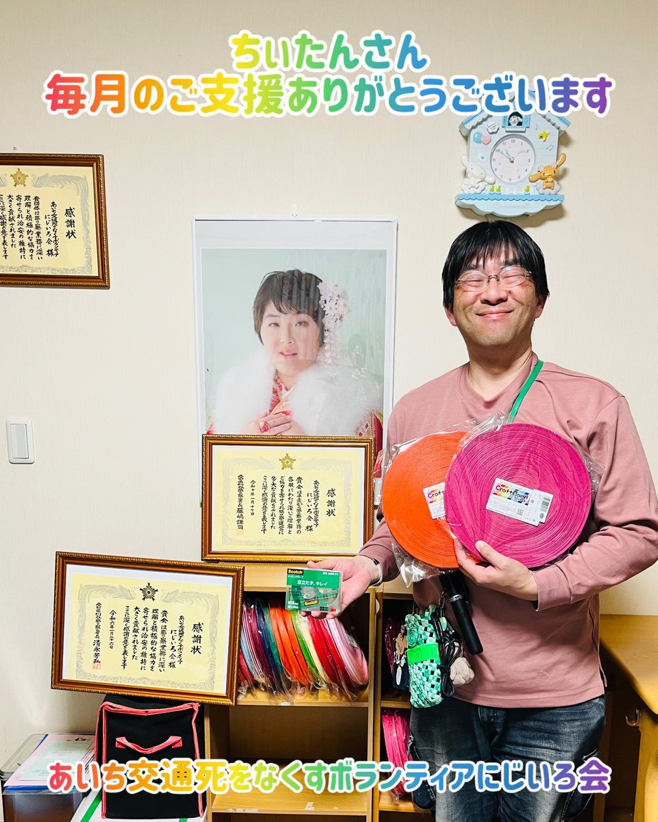 ちぃたんさん毎月のご支援ありがとうございます⁽⁽٩(◍˃ᗜ˂◍)۶⁾⁾ #ストラップ の #材料 の #ご支援 #ありがとうございます #あいち交通死をなくすボランティアにじいろ会 #にじいろ会 #さえりんストラップ #Amazon #アマゾン #アマゾンみんなで応援プログラム #クラフト紙バンド pic.x.com/9dxljDK6QQ