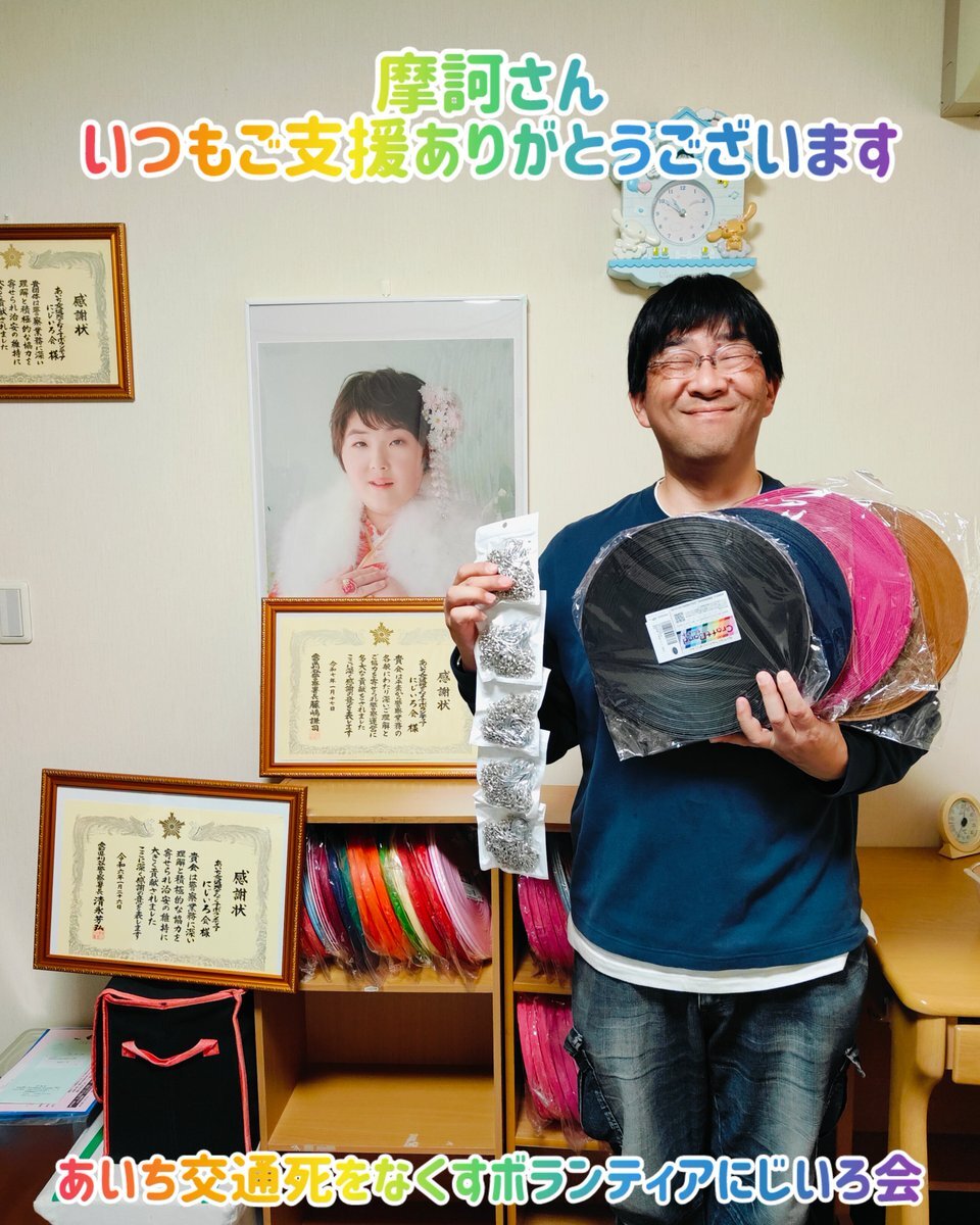 ちぃたんさん毎月のご支援ありがとうございます⁽⁽٩(◍˃ᗜ˂◍)۶⁾⁾ #ストラップ の #材料 の #ご支援 #ありがとうございます #あいち交通死をなくすボランティアにじいろ会 #にじいろ会 #さえりんストラップ #Amazon #アマゾン #アマゾンみんなで応援プログラム #クラフト紙バンド pic.x.com/q7EJsl0FDx
