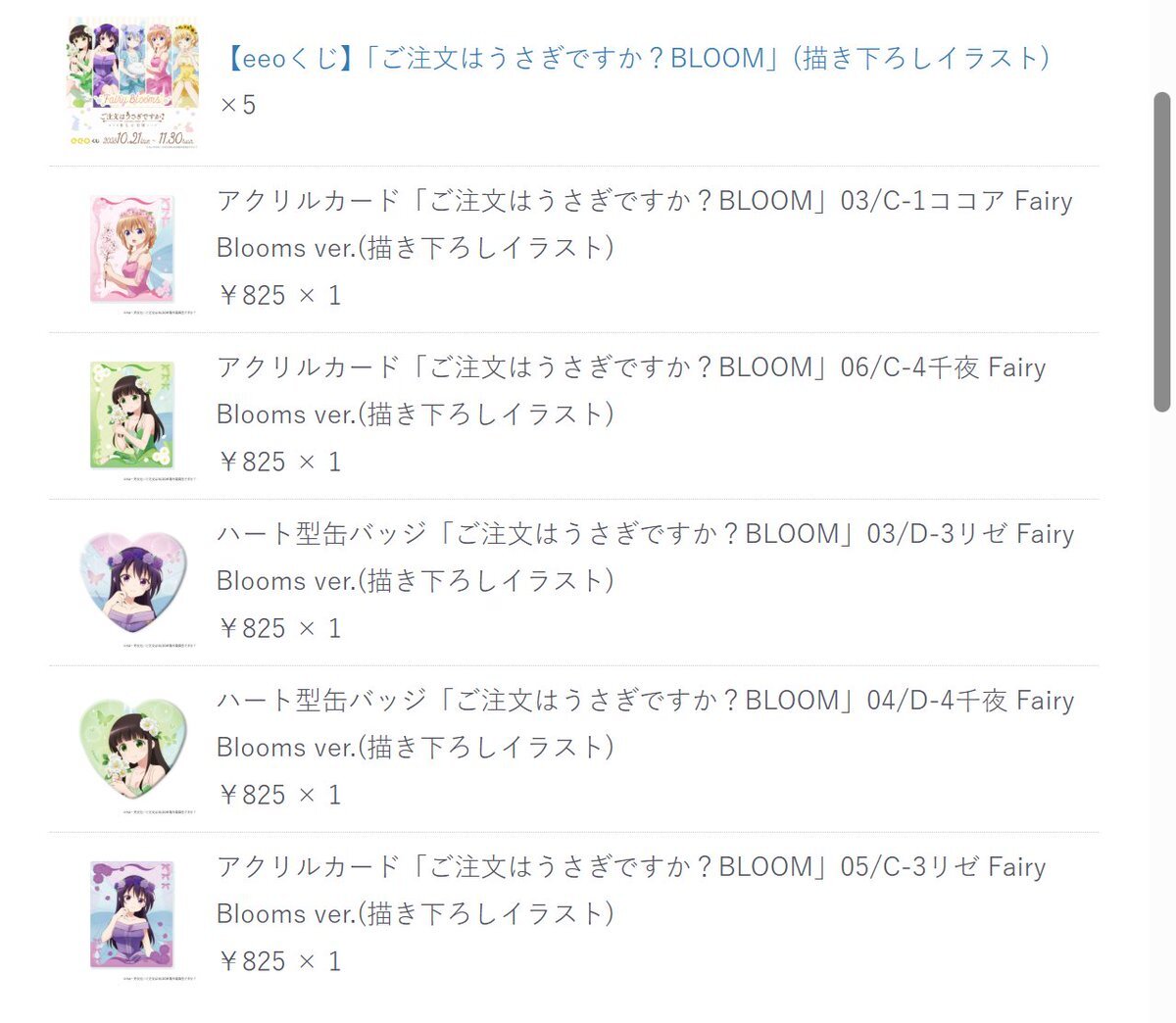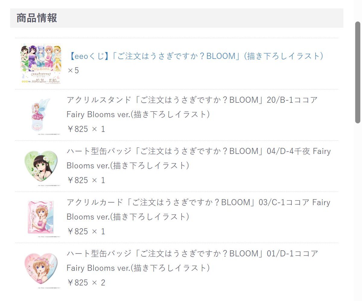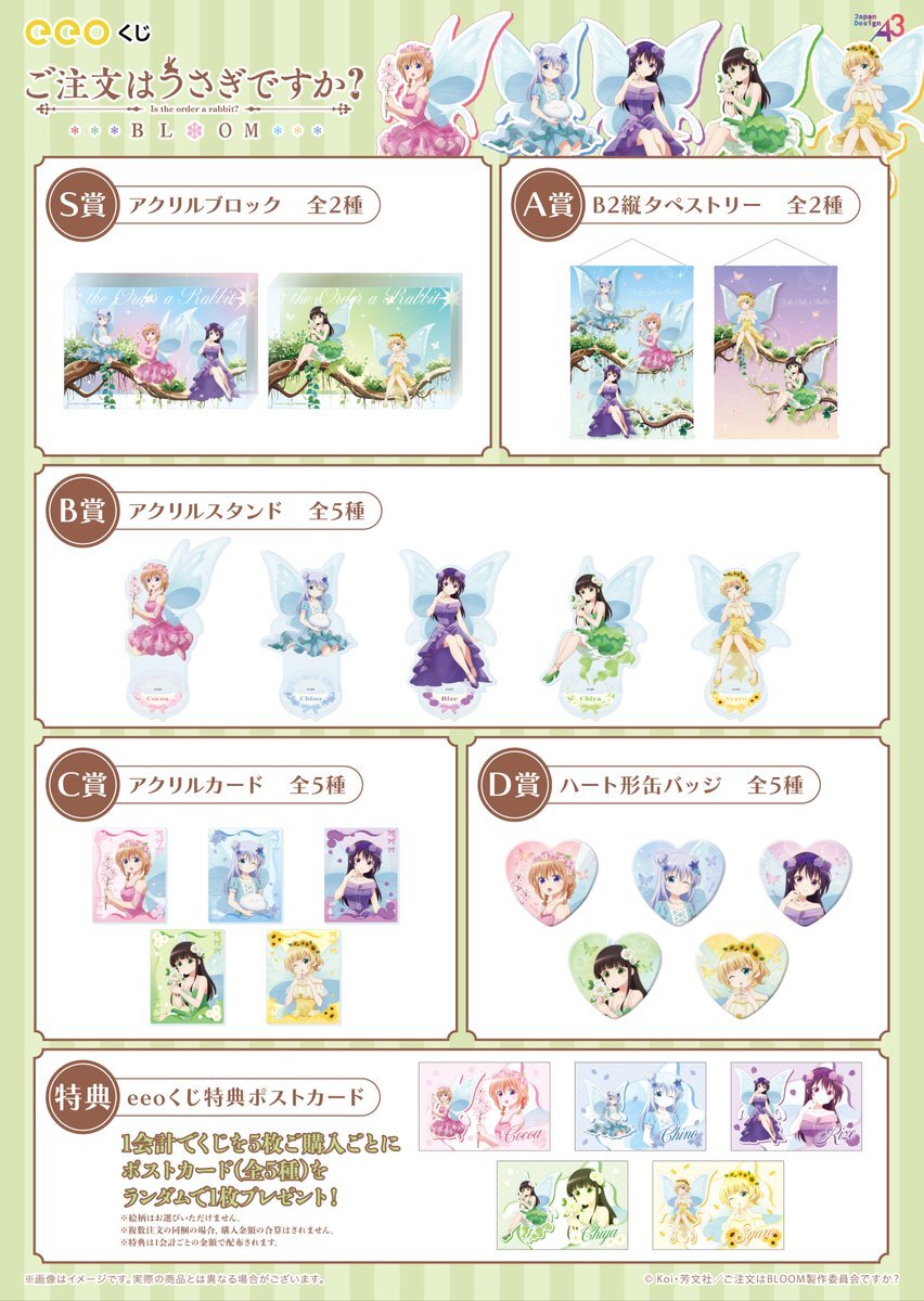 🌿情報解禁🌿 / 『#ご注文はうさぎですか?BLOOM』 新規描き下ろしオンラインくじの発売決定💫 \ テーマは…「𝑭𝒂𝒊𝒓𝒚 𝑩𝒍𝒐𝒐𝒎𝒔」🌷🫧*.+゚ お花の妖精姿の可愛い描き下ろしグッズを ぜひお迎えしてくださいね🫶🏻💚 📅10/21(火)~11/30(日) 🛒eeo.today/store/101/titl… pic.x.com/fFVCCPLpED