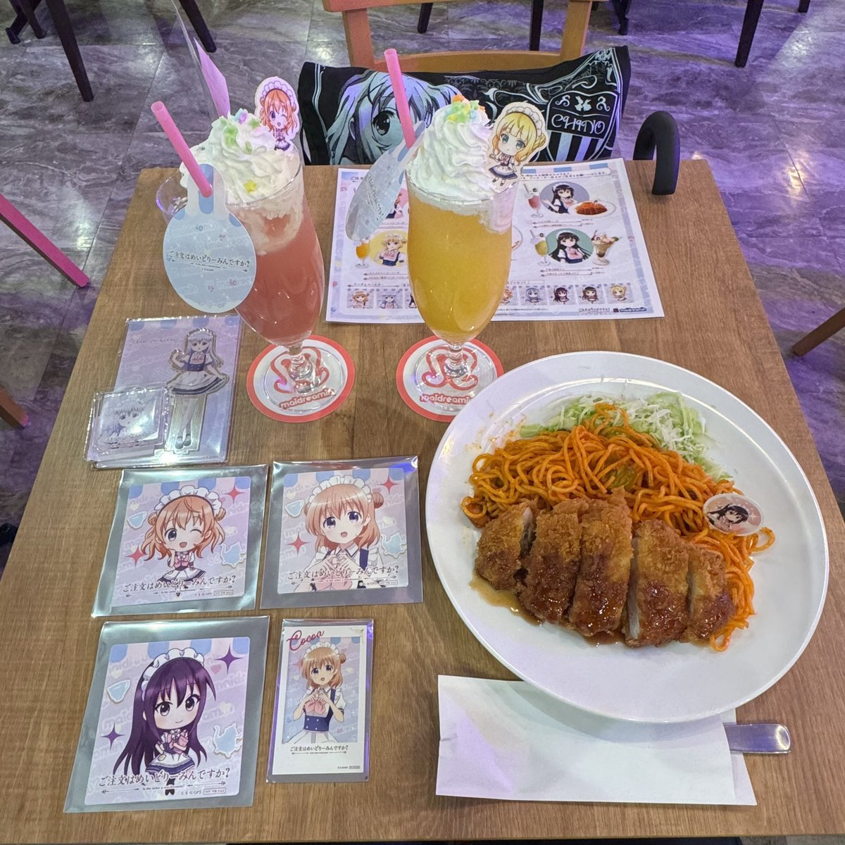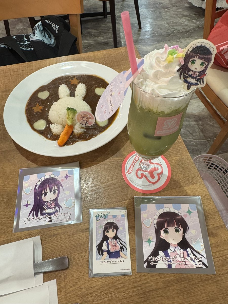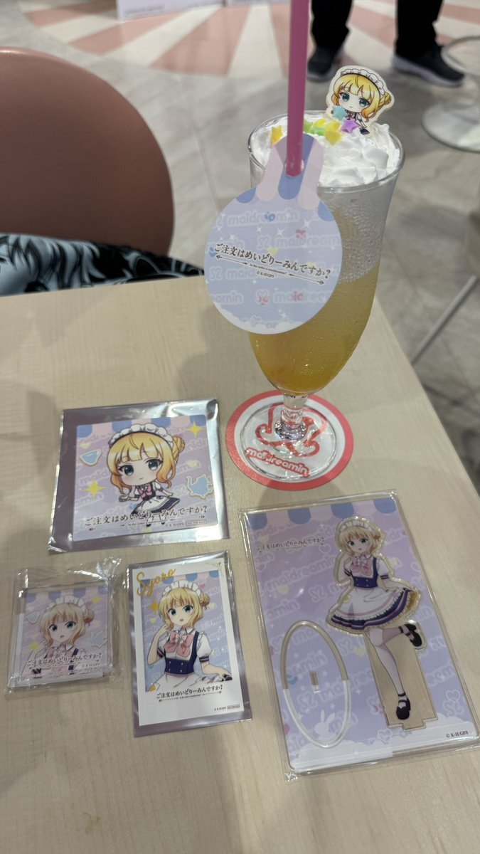 今日もめいどりーみんへ コラボメニューは全てコンプリート 特典はチェキ風カードが奇跡的に被りなし コースターは少し偏りがある😅 #ご注文はめいどりーみんですか #ごちうさ #gochiusa #ご注文はうさぎですか pic.x.com/z0SEW63vSh