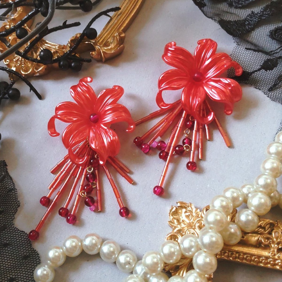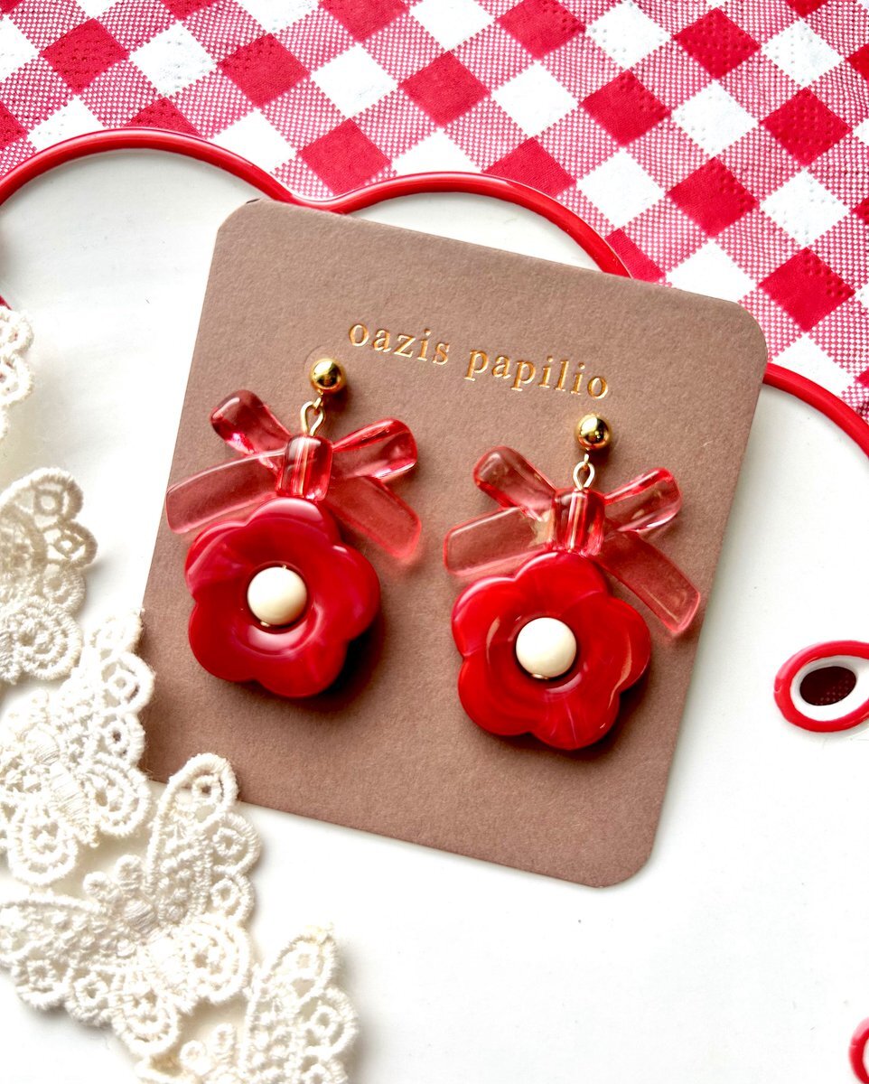 #ご縁を結ぶ赤い色 真っ赤なお花とリボンの耳飾り♥️ pic.x.com/hehQuXYgUA