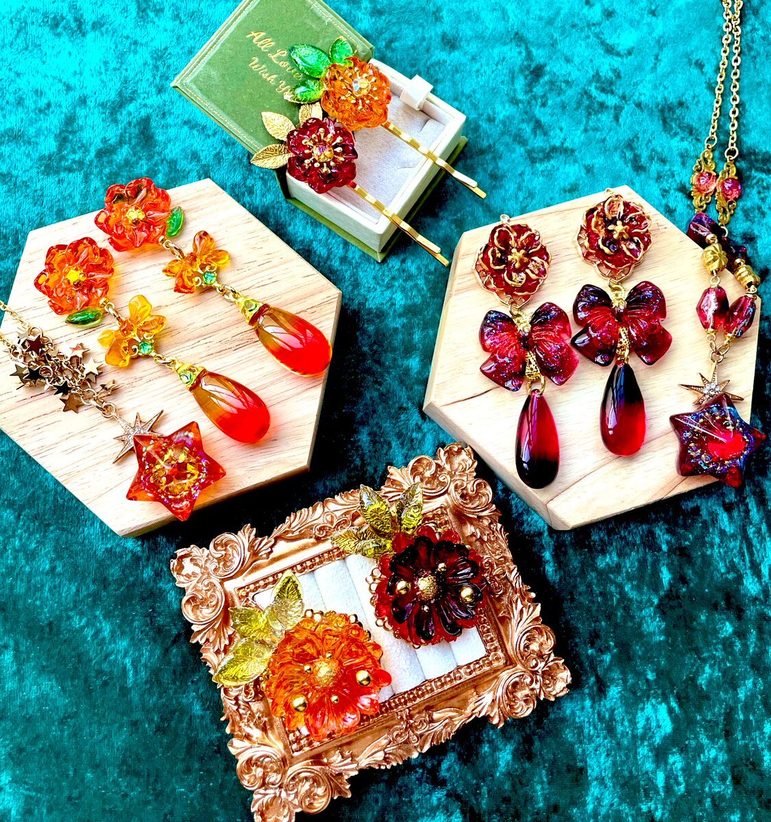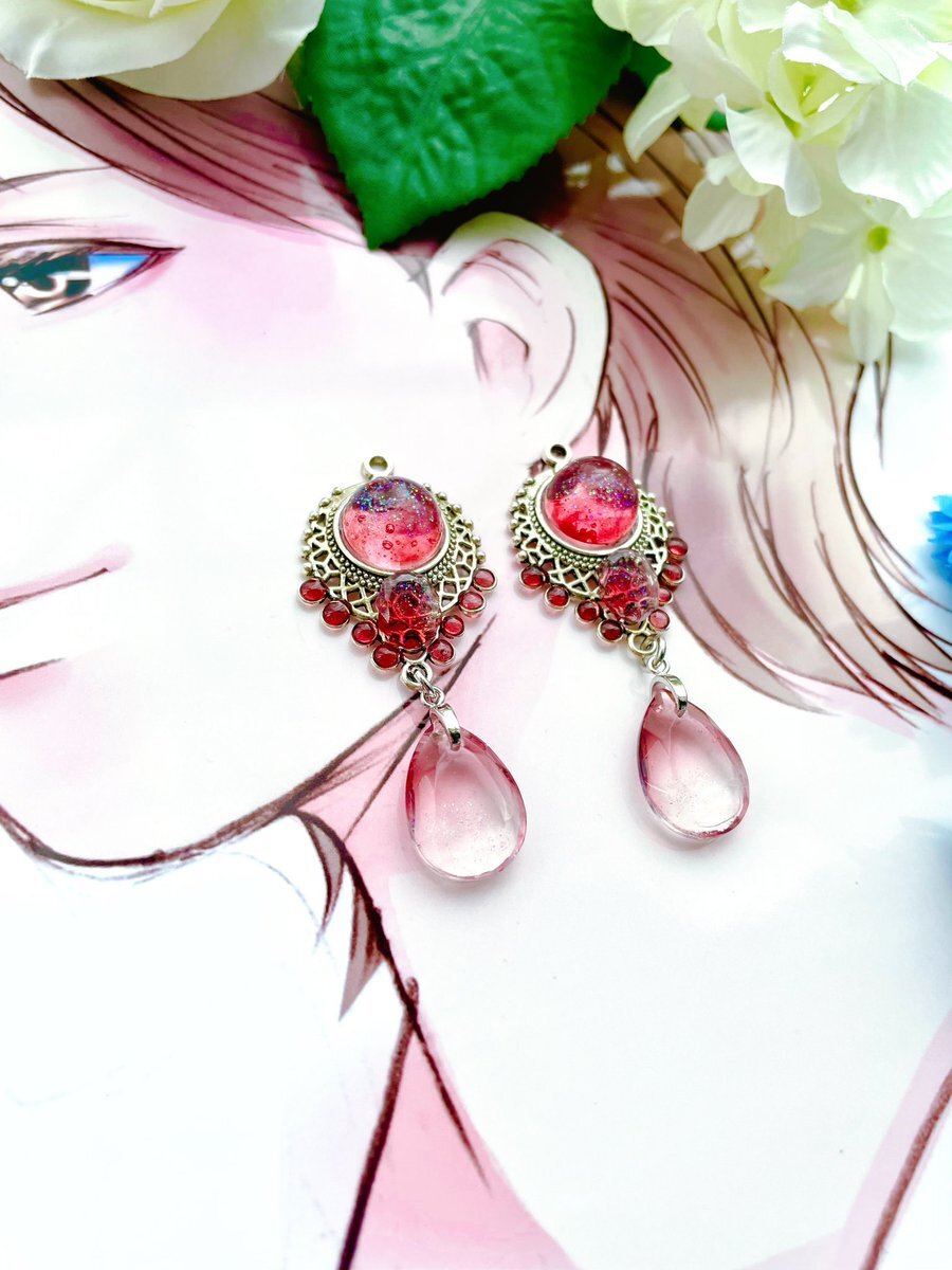 #ご縁を結ぶ赤い色 赤いかすみ草を詰めた アクセサリーです。 pic.x.com/iHbVFyBOip