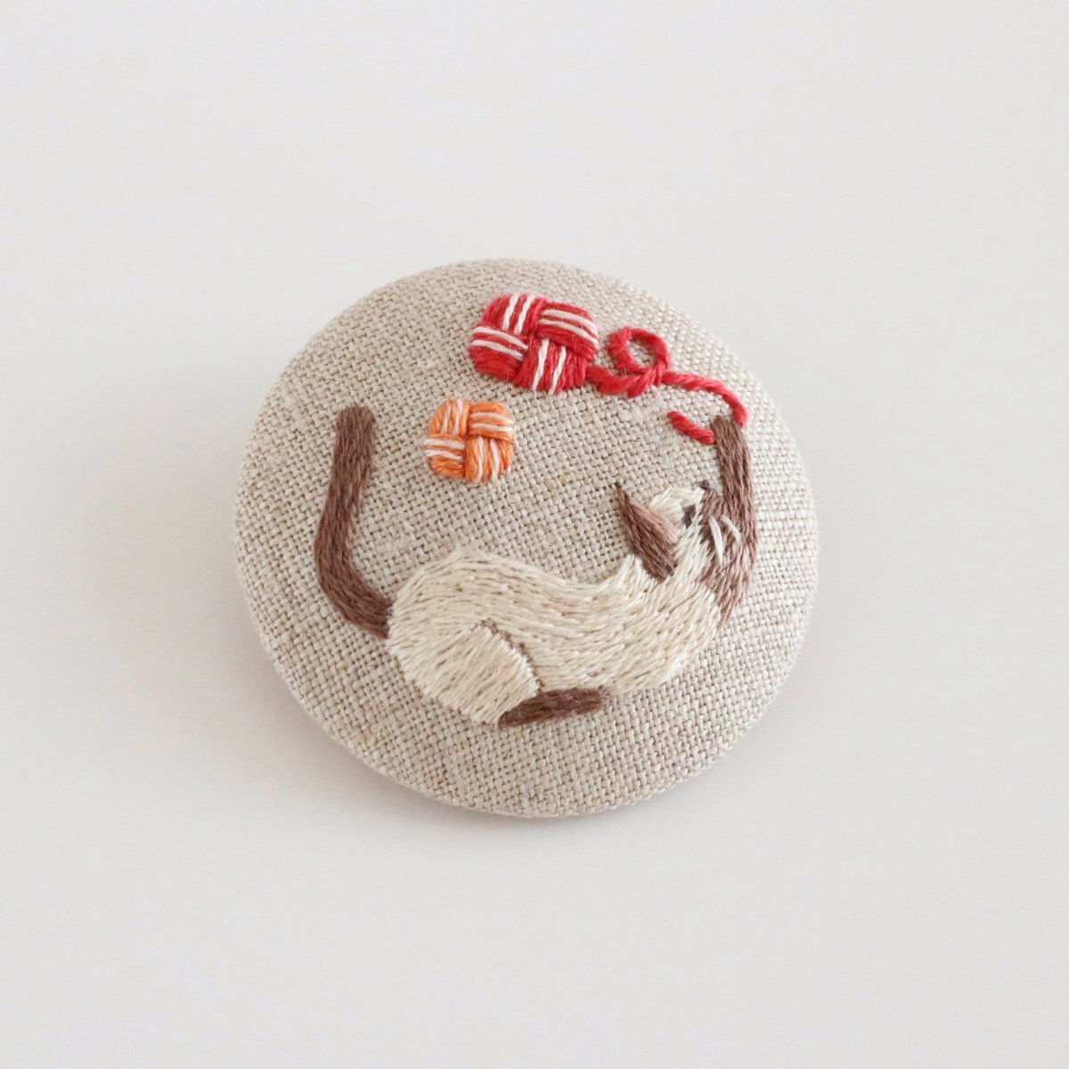 #ご縁を結ぶ赤い色 赤い毛糸玉🧶 コロコロ遊ぶシャム猫さん♩ 手刺繍ブローチ creema.jp/item/12560538/… pic.x.com/KK9O7twwlG