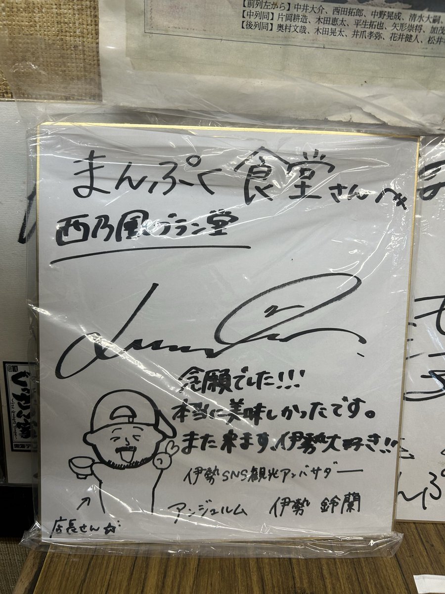 まんぷく食堂さんの「からあげ丼」が最高だった。スパイシーな唐揚げの玉子とじ丼。 ボリュームも有り 伊勢さんのインスタ頼りに行ってみたら、サインも見れた 今日の大当たり 店長さんのイラスト、ビーバーの藤原さんかと思った笑🥁 #おいないさ伊勢 #ご飯ととるのがいいと聞きました pic.x.com/aizsVZlB60