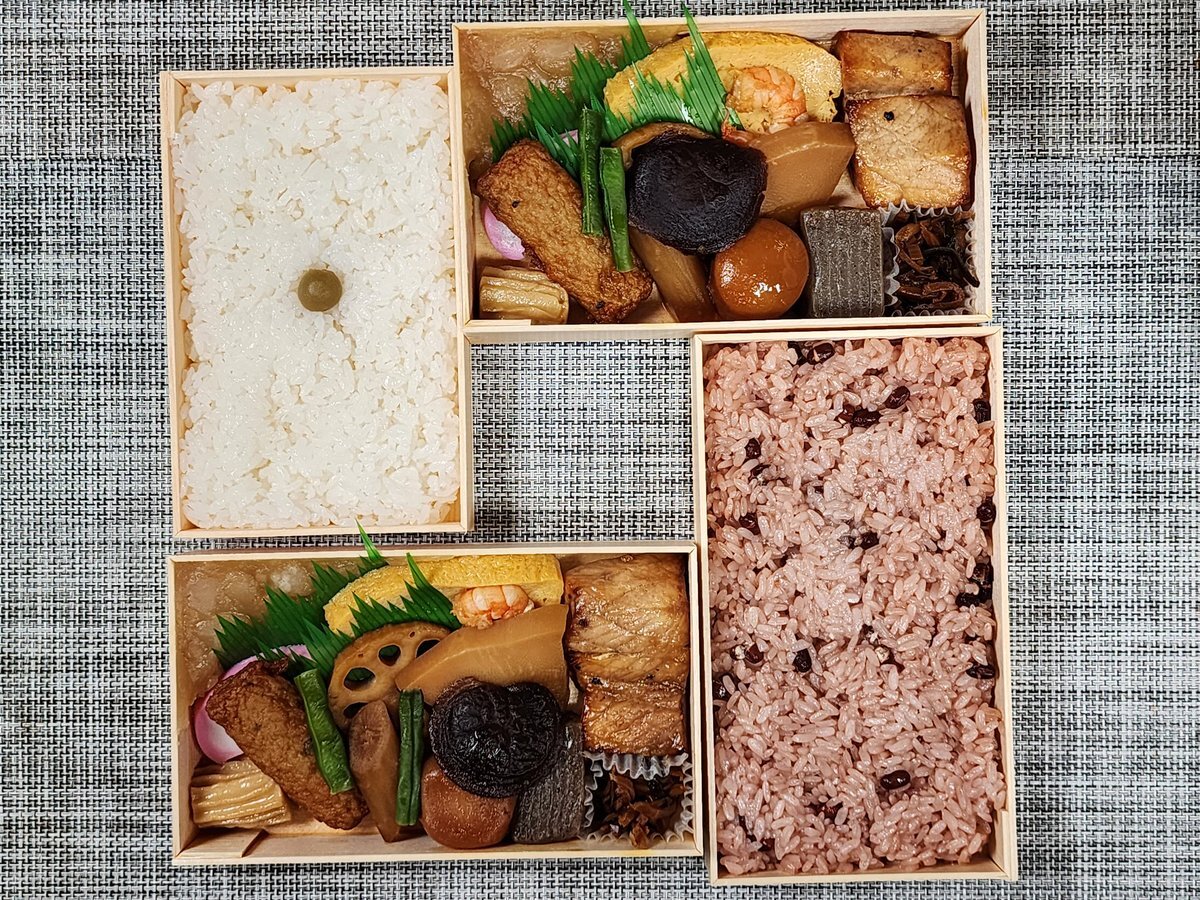 晩ごはんは、日本橋 弁松総本店のお弁当「並かし七(なみかしなな)」 白飯弁当と実質赤飯弁当 めかじき照焼、玉子焼、蒲鉾、豆きんとん、甘煮(つと麩、蓮根、里芋、蒟蒻、さつまあげ、筍、ごぼう、椎茸、いんげん)、えび旨煮、生姜辛煮 #まさやんごはん #ご飯ととるのがいいと聞きました #おうちごはん pic.x.com/OhpvhHPvVc