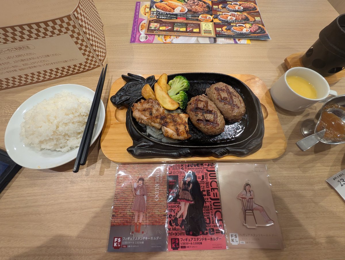 Juice=Juice武道館公演終わって、九段下飯田橋周辺で食わず羽生駅まで戻って車乗り換えて深谷のビッグボーイで晩御飯 大俵ハンバーグ200g&グリルチキン スープバーライスバーサラダバーのプレミアムセットFSKは、武道館なのでJuiceの推し🐙由愛ちゃんのみ #ご飯ととるのがいいと聞きました pic.x.com/7aLUTEjygC