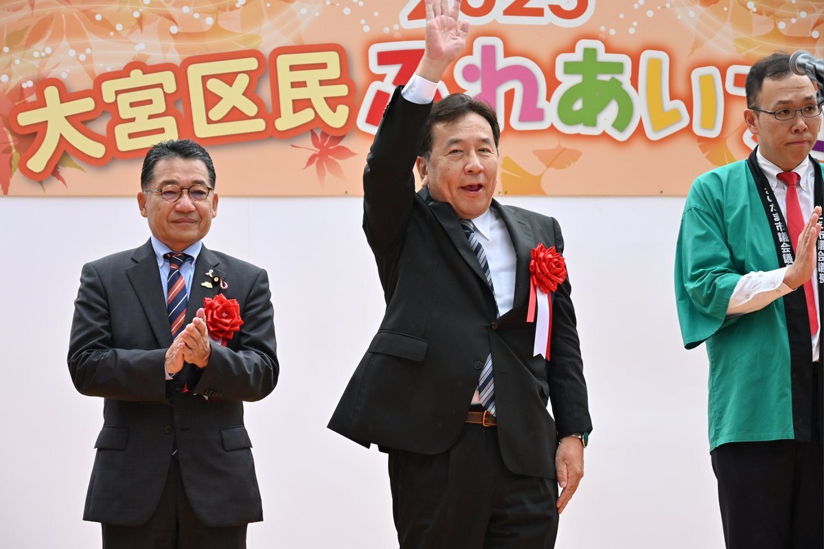 午前中のえだのんは #さいたま市大宮区 鐘塚公園で開催された #大宮区民ふれあいフェア2025 へ。あいにくの雨模様でしたが開会式が始まる頃には傘が要らない程の小降りに🌂#くまがい裕人 参議院議員 #西山さちよ 市議と一緒でした😊 #えだのん #枝野幸男 #地元活動 #埼玉5区 pic.x.com/w1R8h0rzDf