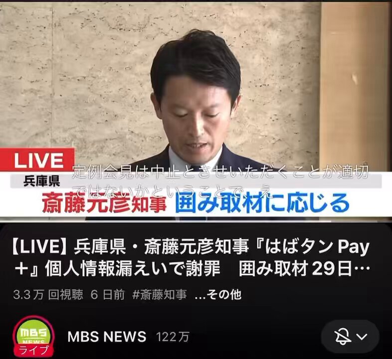 しかし、兵庫県の 最低痴児は最悪ですね。 「まっ、やはり〜」が特に気持ち悪いです👎 #斎藤元彦は知事失格 #さいとう元彦は人類の敵