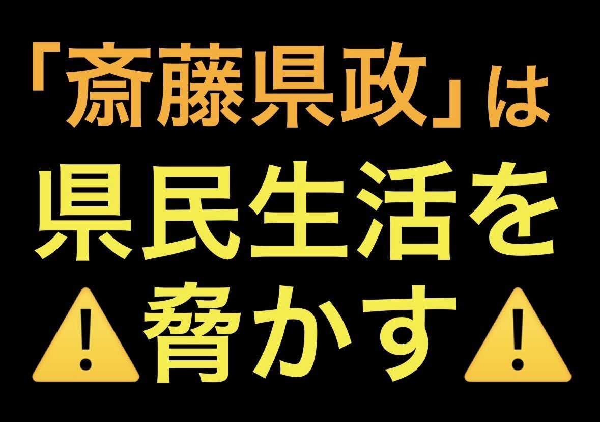⚠️「斎藤県政」は県民生活を脅かす😠 #さいとう県政にNO #斎藤元彦は謝罪せよ #斎藤元彦は説明責任を果たせ #斎藤元彦は知事失格 pic.x.com/2u0voGKuRs x.com/OGtBFMi3noHO3A…