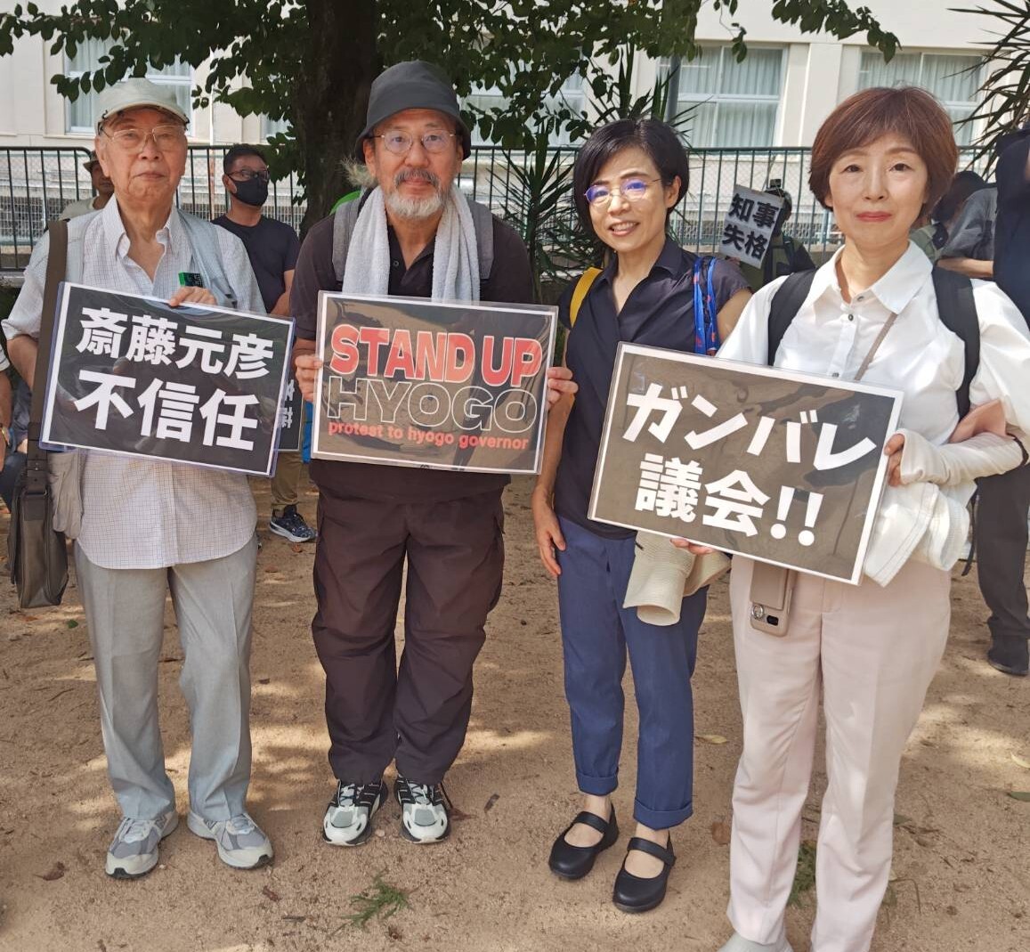 一昨日のひょうごデモ行進出発地点の公園で、何人もの友人知人に出会い、旧交を温めました。 Xでよく見る市民の方は「さっき県庁前で共産党の庄本さん(県議)と会ったけど、『がんばろうね』って言ってくれましたよ~」と。