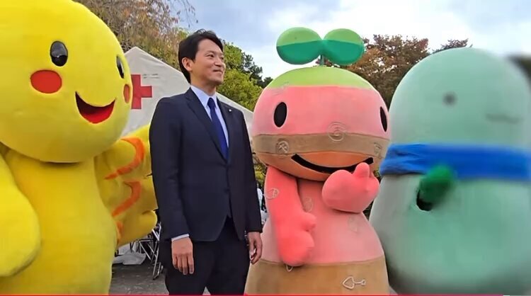 着ぐるみゆるキャラ3体にも ご丁寧に最後挨拶される齋藤知事 お育ちの良さやお相手へ気持ちを慮る 配慮を感じる #さいとう知事がんばれ #さいとう知事ありがとう #丹波の森道の駅まつり