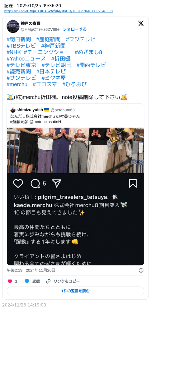 選対の幹部と言えば… こうして幅はどんどん狭まっていく その手がかりすら #さいとう知事支持者 自らが撮り嬉々として上げる動画、ポストの中にふんだんに😳 #かまやみひ #神戸の夜景 #兵庫県広報 x.com/mayuta66190906…