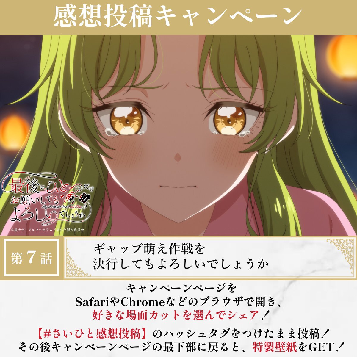 第7話 「ギャップ萌え作戦を決行してもよろしいでしょうか」 #さいひと感想投稿 #さいひと #MayIAsk saihito-anime.com/special/kanso-… 面白い!