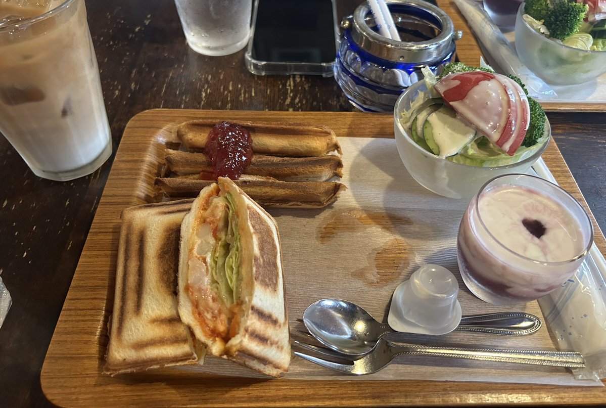 #秋元咲 ちゃんオススメの #ばんかむ さんへ🚶♀️ ここジモティー度高し‼️ マロンやクレオパトラは ガイド📙に出てそうですが。 メキシカンサンドセットと 単品追加で小倉トーストを🍞 食べている最中 『オレンジマーマレード🍞 (オリジナル)』 に気付いてしまい 頼めば良かったと後悔😢 #さくちゃん日記 pic.x.com/JkVt76Qw1e x.com/akmt_saku/stat…
