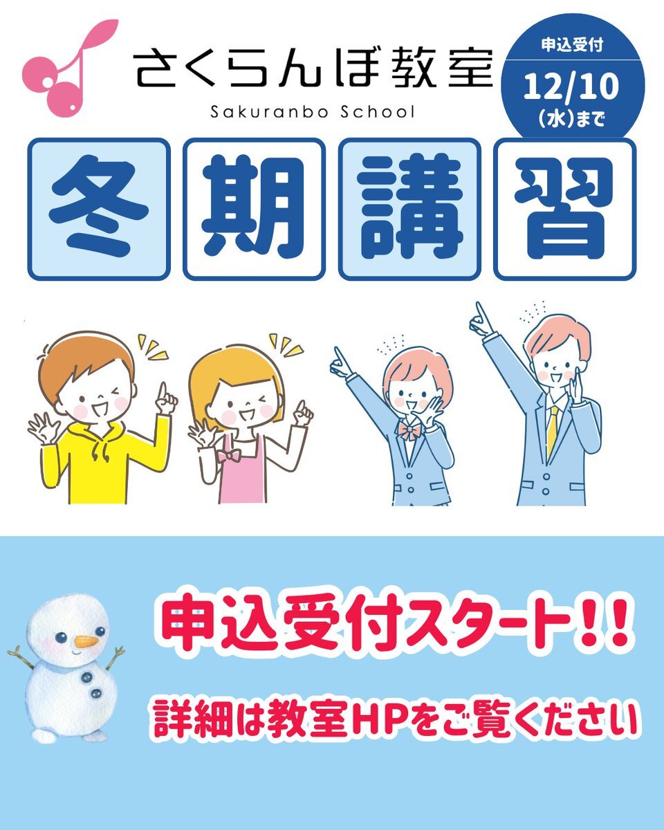 冬期講習申込スタート!個別学習も冬限定SSTを学べるウィンタースクール☃️さまざまな受験に対応の志望校対策🔥基礎学力を身に付けるマンツーマンサポート😊一人ひとりの力を伸ばすプログラムをご用意しています。詳細は教室HP(sakuranbo-class.com/seasonschool/)をご覧ください。#さくらんぼ教室 #冬期講習 pic.x.com/FsDwom0Syy