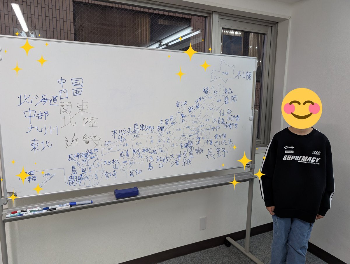 興味があった「地図」「漢字」を生かしてホワイトボードに日本地図&都道府県&県庁所在地を書きあげたので見てください!と、ある教室長から連絡が✨最近勉強への不安が和らぎ挑戦する気持ちが復活してきた彼は漢字検定にも興味が出てきたそうです😎すごい! #さくらんぼ教室 #個性は生きる力 #三鷹 pic.x.com/dCrmHZd5vp