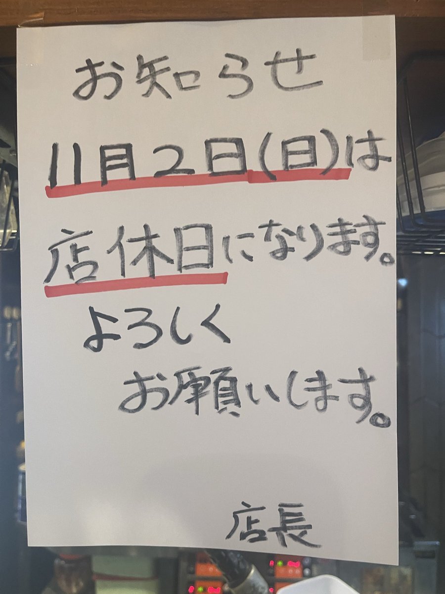 本日も開店してます☺️ おすすめは人気の為本日も芋煮仕込みました💛 そして、11月の店休は2日となっております。 お気をつけ下さい💦 本日もお待ちしてます☺️ #さけときどきぶた #さけぶた #センベロ #せんべろ #大衆酒場 #居酒屋 #もつ焼き #もつ煮込み #串焼き #やきとん #焼き鳥 #立ち飲み pic.x.com/OugfTEEyyt